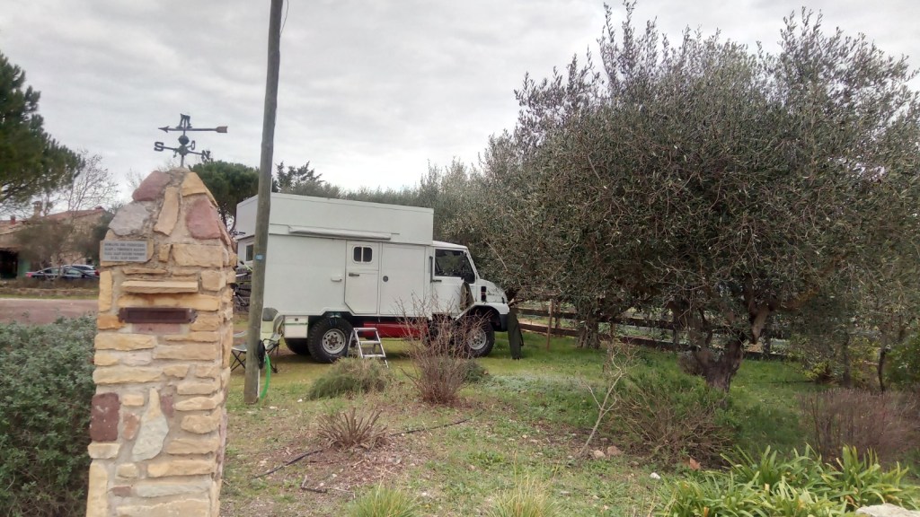 Und schon wieder ein Tag vorbei – die Zeit fliegt dahin. Weiter nach Hyers – leider war der Platz dort eine Baustelle daher sind wir weiter ins Landesinnere gefahren nach Cuers. Hier einen schönen Platz gefunden an einem Weingut inmitten von Weinreben. Die Tage sind schön, die Nächte eisig – aber wir haben ja unsere Standheizung ;o)