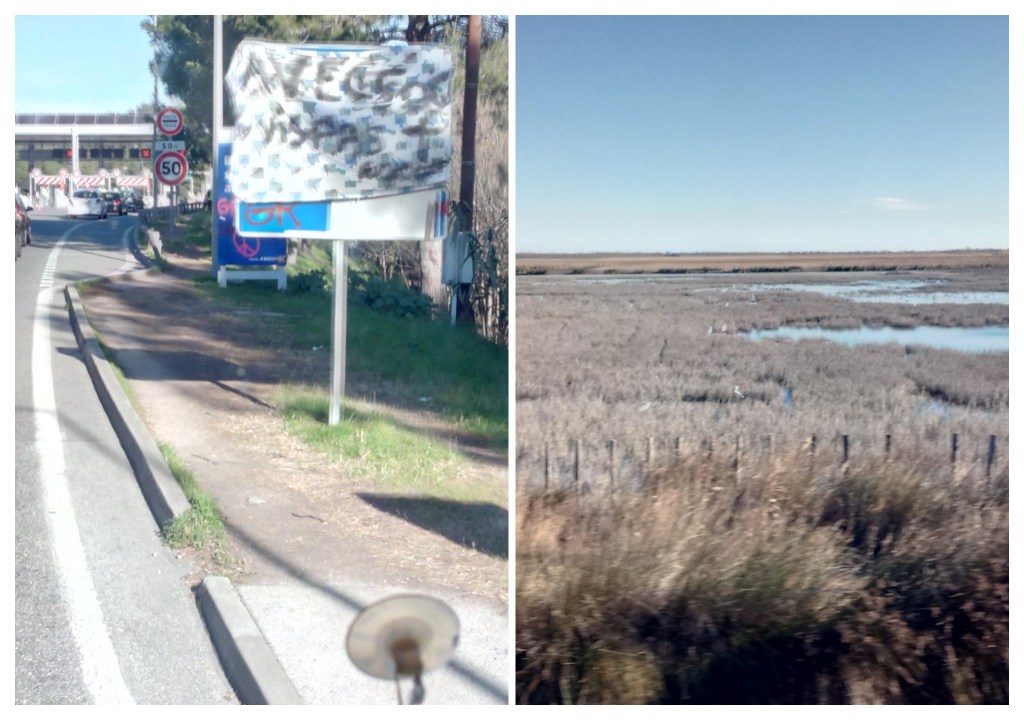Weiter geht’s Richtung Camargue – eine raue aber sehr schöne Gegend bekannt für die schönen Pferde. Um die 200km zügig zu fahren haben wir uns für die Autobahnen entschieden. Ja, wir trafen sie die Gilet Jaunes -oder Gelbwesten, die gegen Macron demonstrieren. Waren alle ganz friedlich und haben uns sogar einmal Maut erspart, da sie die Zahlstelle kaputt gemacht haben. Bei der nächsten Mautstelle waren sogar die Schranken zerstört und ca. 25 Polizisten standen bereit. Erst später haben wir in den Nachrichten gesehen, was der Grund war: Die Gilet Jaunes haben zu neuen Streiks ab 15 Uhr aufgerufen. Nach 150km war die Autobahn zu Ende und es ging auf Nebenstrassen durch die wunderschöne Landschaft der Camargue. Wir fuhren durch St. Marie de la mer und danach zu unserem Übernachtungsplatz Manade des Baumelles.
