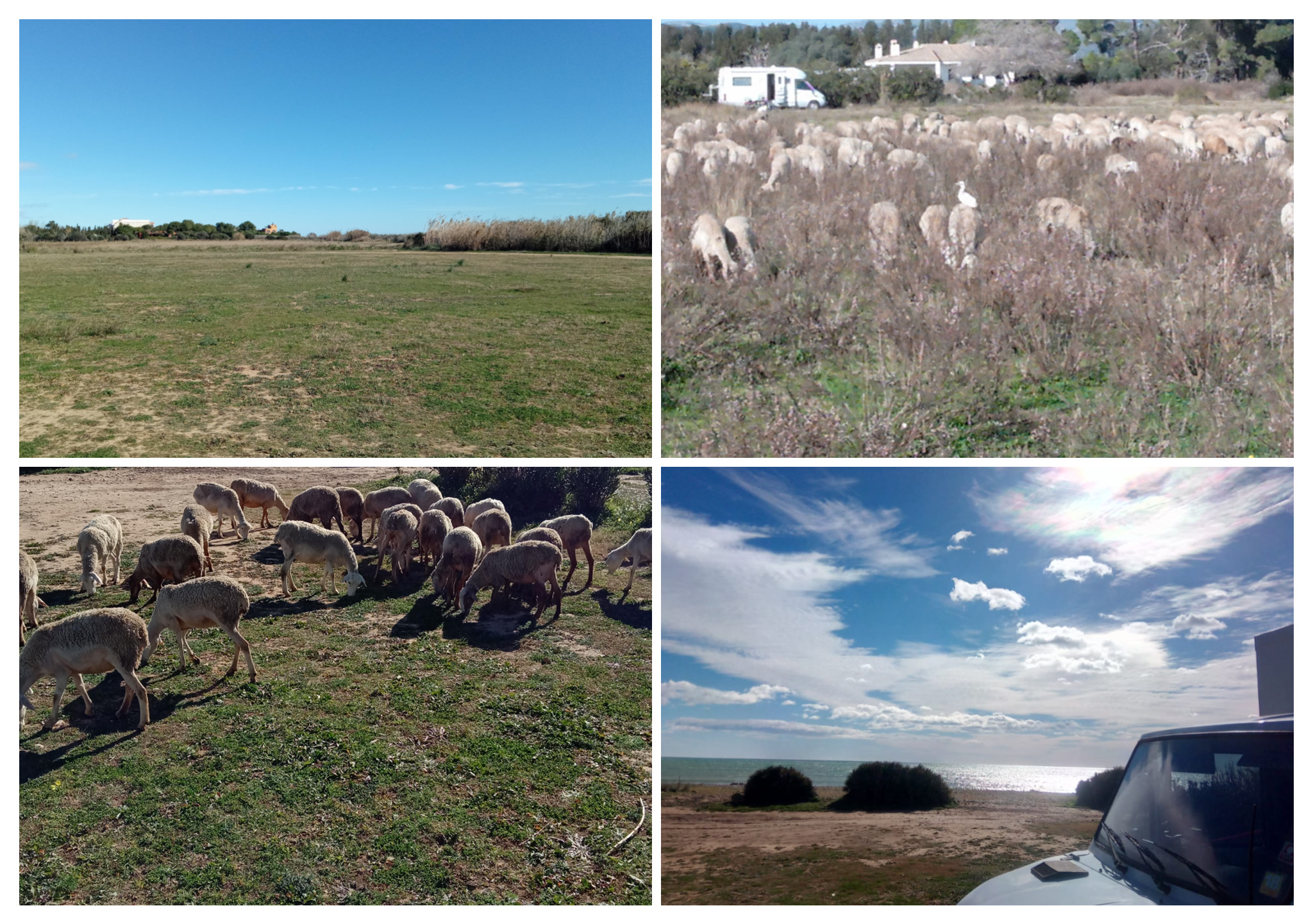 Auf dem Weg nach Süden gelangen wir auf einen Stellplatz, den man ohne App nicht finden würde. Über eine Schotterstrasse gelangen wir zu einer riesigen Wiese direkt am Meer. Nur 3 Autos. Wetter ein Traum. Plötzlich tauchen Schafe aus – sie kommen immer näher bis sie unser Auto umzingelt haben. Cooles Erlebnis :O)