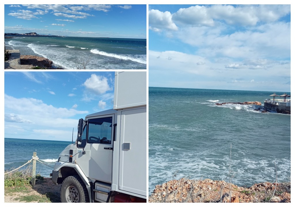 Was für ein schöner Platz – dachte ich, als wir ihn gefunden haben. Direkt am Meer zwischen 2 Restaurants bei wunderbarem Wetter. Ja, es war etwas windig aber ist ja nichts neues. Naja, die Nacht war seeehr windig, fast wie auf einem Schiff…. Am nächsten Tag konnten wir das Salz von den Fenstern der Windseite kratzen – Ja unser Bärbel benötigt eine Autowäsche.