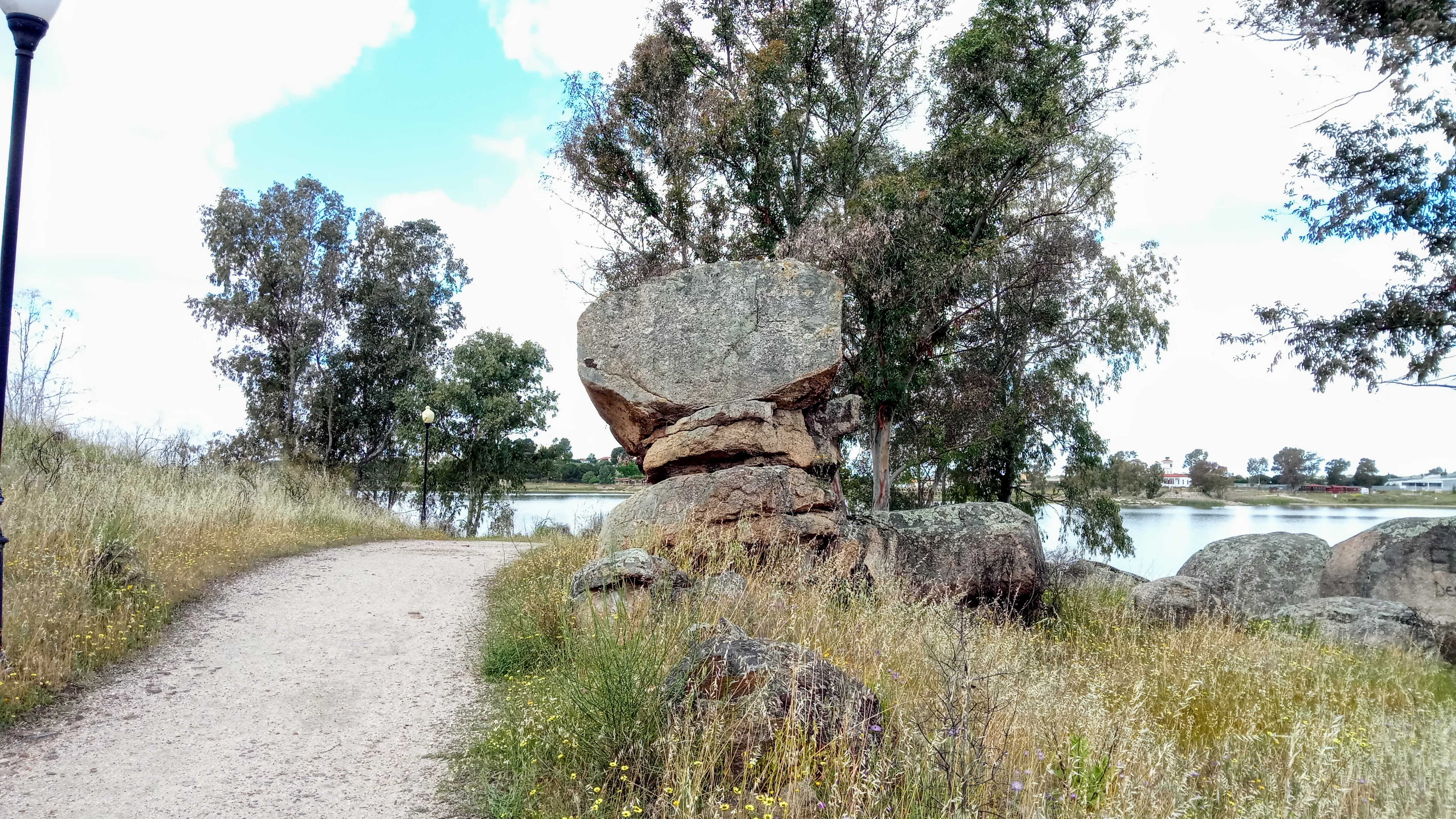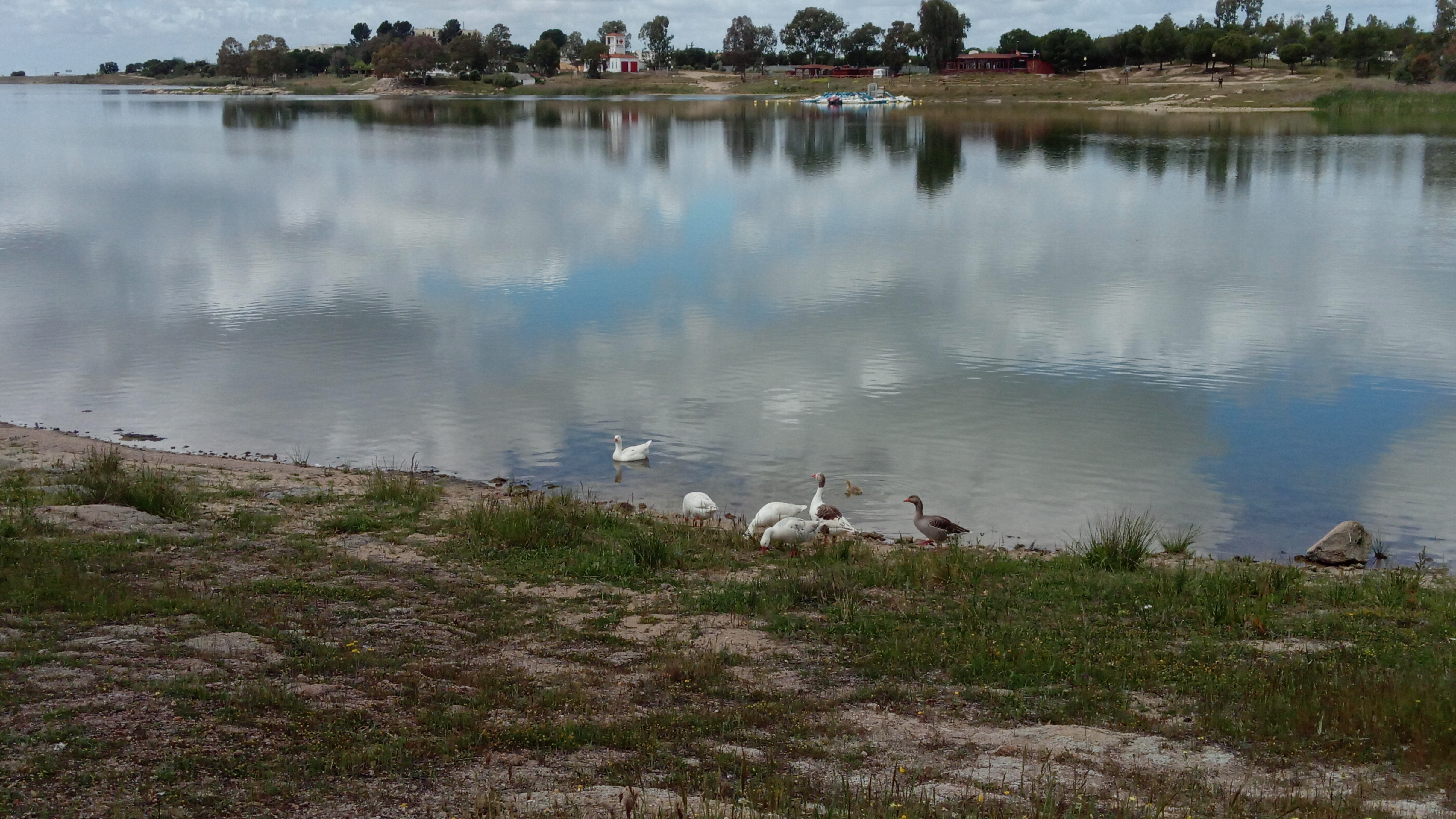 Wieder mal an einen See – also auf nach zum Embalse de Proserpina. Was für ein wunderschöner See!! Einfach fantastisch. Aufgrund der starken Regenfälle mussten wir durch 2 tiefe Wasserlöcher fahren aber für unsere Baerbel ist das kein Problem ;O). Wir suchen einen einigermassen ebenen Platz nicht weit vom See entfernt. Ich mache mich auf, die Gegend zu erkunden und spaziere um dem See herum. Was als kleiner Spaziergang gedacht ist entpuppt sich dann zu einem 21/2 stündigem Ausflug. Aber der Weg ist jeden Meter wert. Unterwegs sehe ich Störche in riesigen Nestern, die durch ihr Geklapper die Nachbarn unterhalten. Ich sehe viele Wasservögel von Enten über Gänse zu Schwänen. Ich hatte sogar das Glück, Wasserschildkröten auf einem Stein im See zu sehen. Die Staumauer war auch sehr beeindruckend. Diese wurde von den Römern erbaut und diente zur Wasserversorgung. Ein wunderschöner Ort um die Seele baumeln zu lassen. Vielleicht trafen sich deswegen am Abend eine Gruppe, welche ein Konzert mit Klangschalen, einer Panflöte einem Triangel und einem Gong gaben. An der Kulisse umgeben vom Wasser mit Teelichtern beleuchtet – einfach nur friedlich und wunderschön!