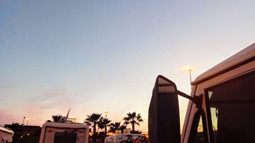 Heading towards a lake again – so we ended up at the Embalse de Prosperina. What a beautiful lake!!! Due to the heavy rainfalls we had to cross 2 big waterholes- no problem for our Baerbel ;O). We search for a more or less levelled place to park close to the lake. I head out to get to know the area by walking around the lake. What was meant to be a short walk ended in a 2 1/2 hours tours. But it is worth every minute. On the way I see storks in their huge nests which are entertaining the neighbours with their clapping. I see a lot of water birds like ducks and geese as well as swans. I even was lucky spotting water turtles on a stone in the lake. The dam was also very impressive. It was built by the romains to ensure the water supply. A very beautiful place to relex your soul. Probably the reason for the free concert we had later that evening with singing bowls, pan flutes, triangle and a gong. With this scenery surrounded by water lighted up with tea candles – absolutely peaceful and beautiful!