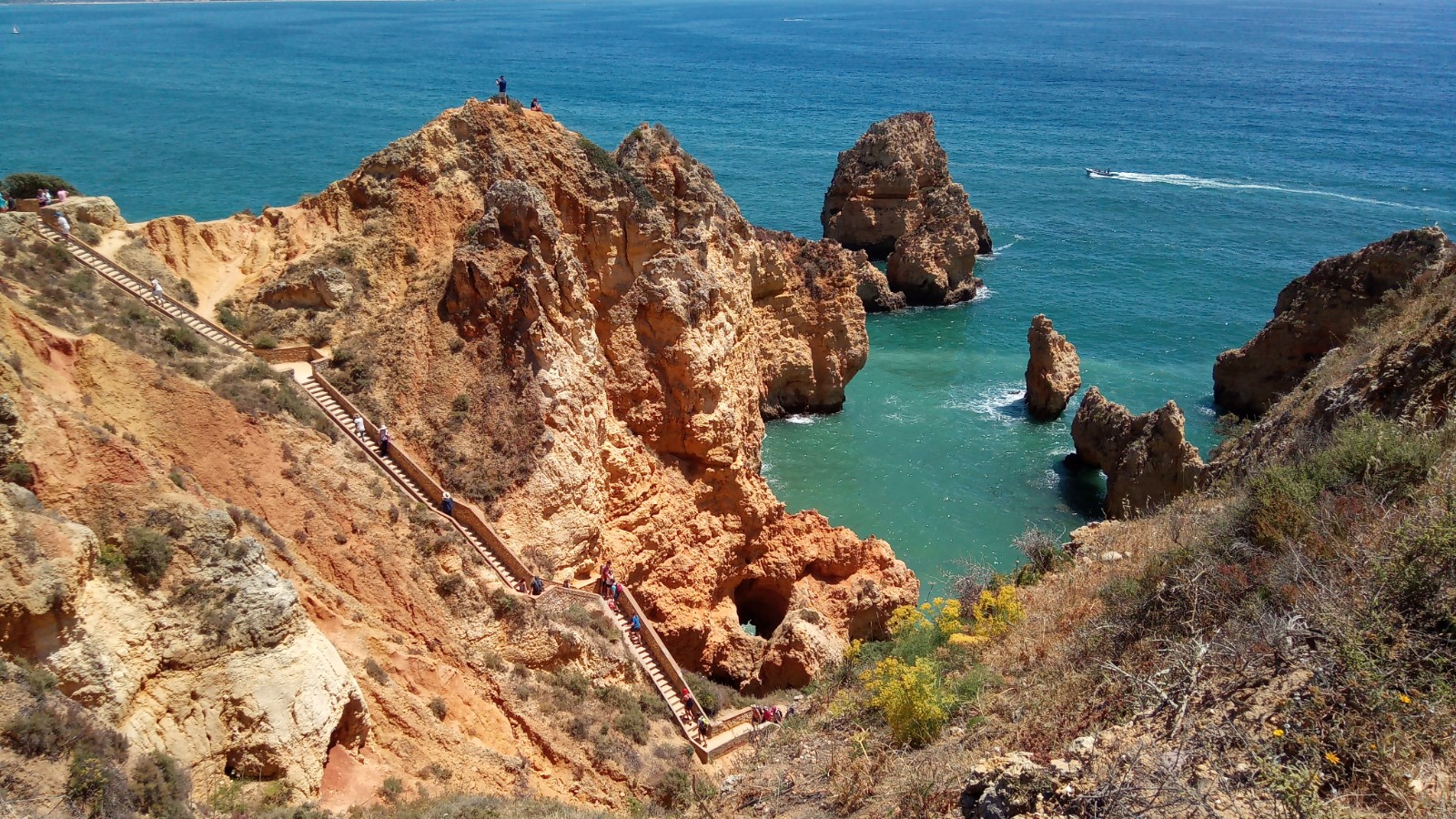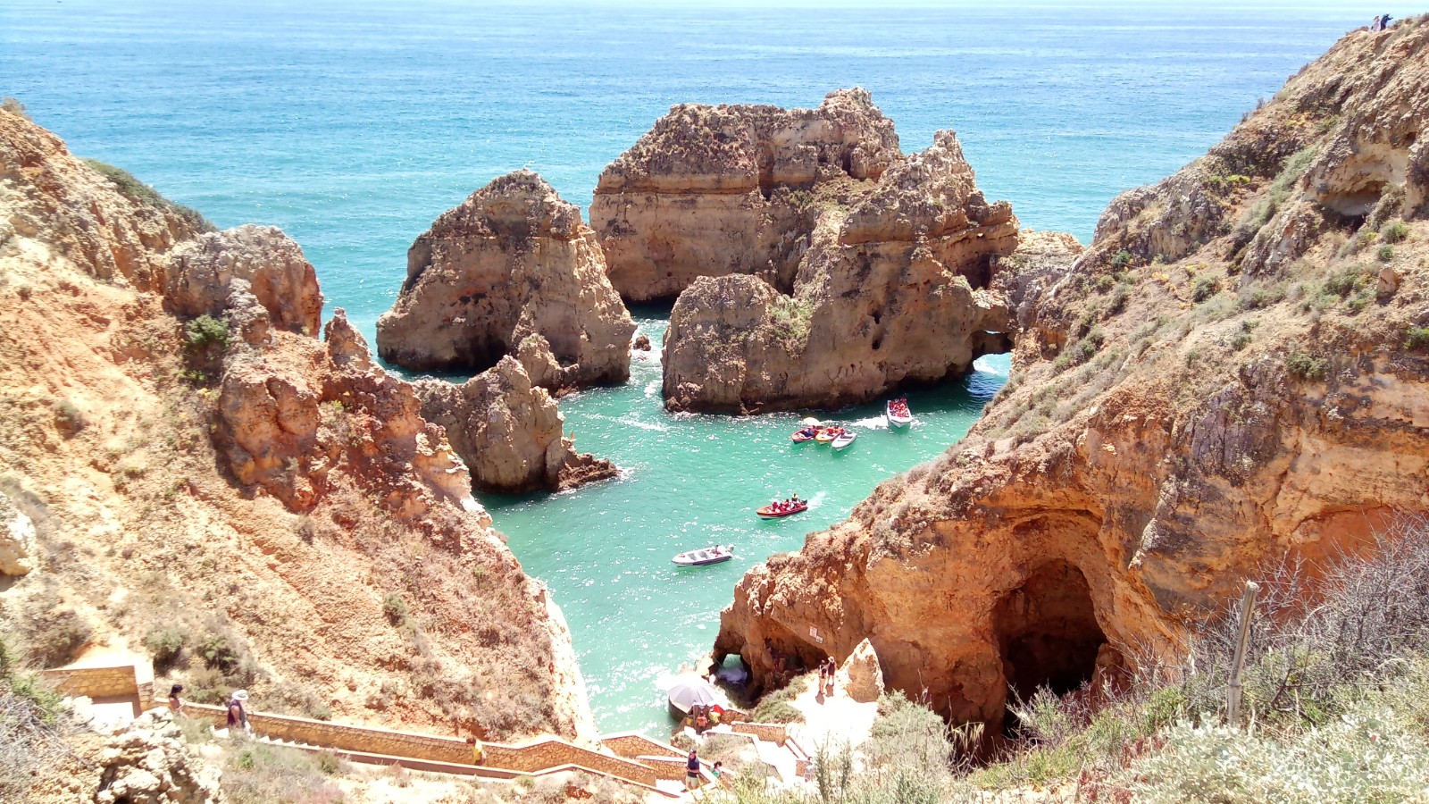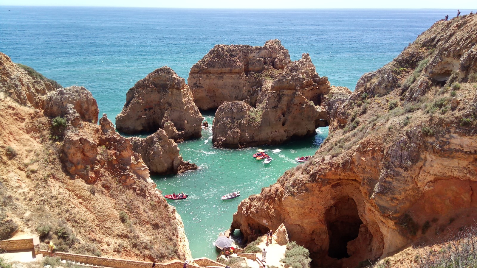 Ponta da Piedade ist der nächste Ort, welchen wir besuchen. Sehr touristisch aber echt einzigartig – Es gibt die Möglichkeit, mit dem Boot durch die Felsen zu fahren.