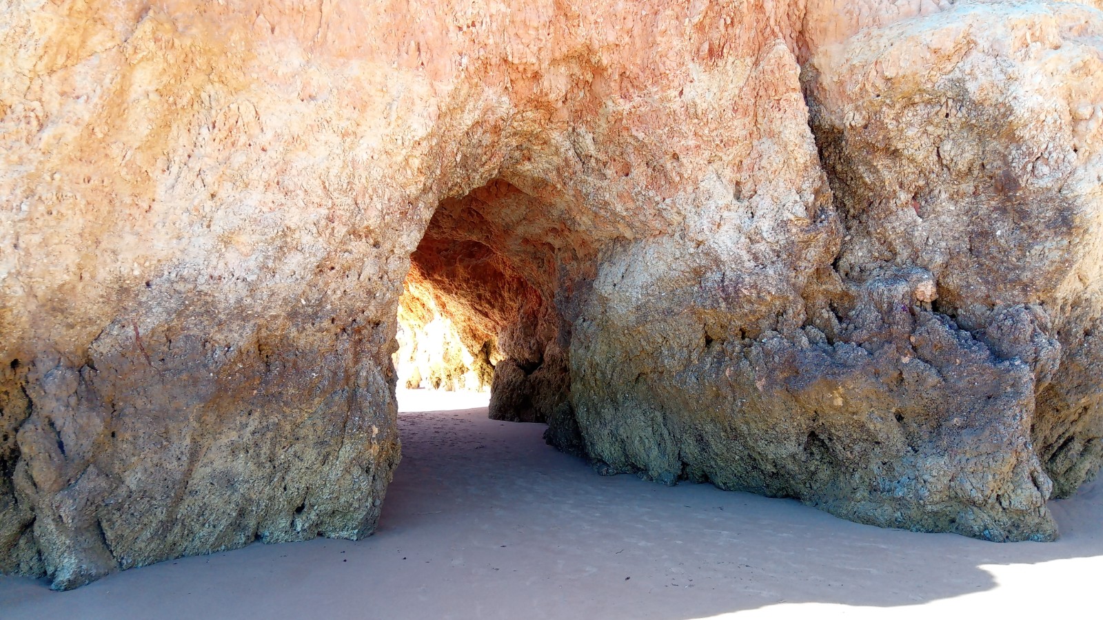 Der Praia de Alvor ist ein wunderschöner kilometerlanger Sandstrand. Wir spazieren über 2 Stunden zu den Caves de Alvor – Absolut sehenswert!