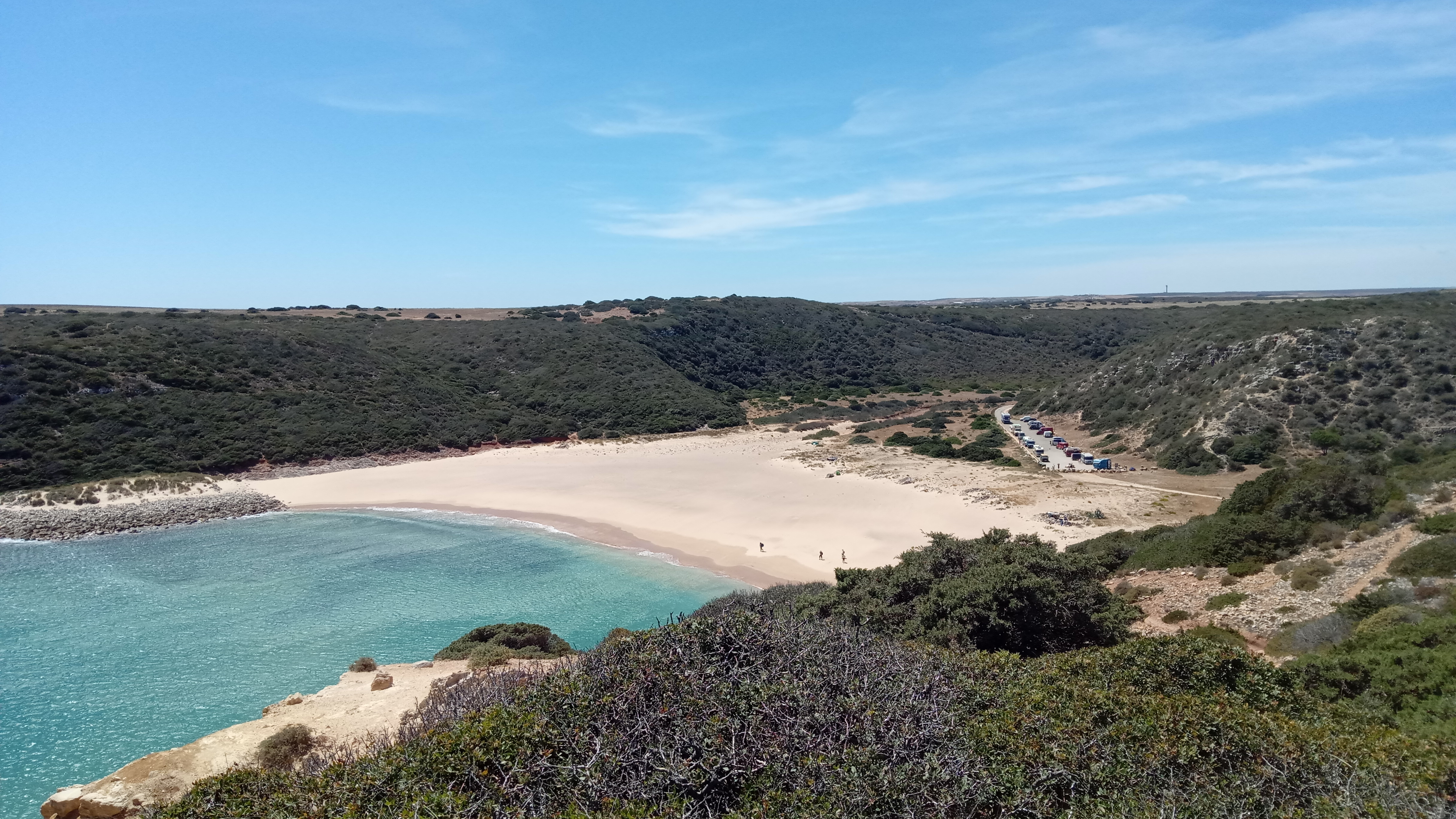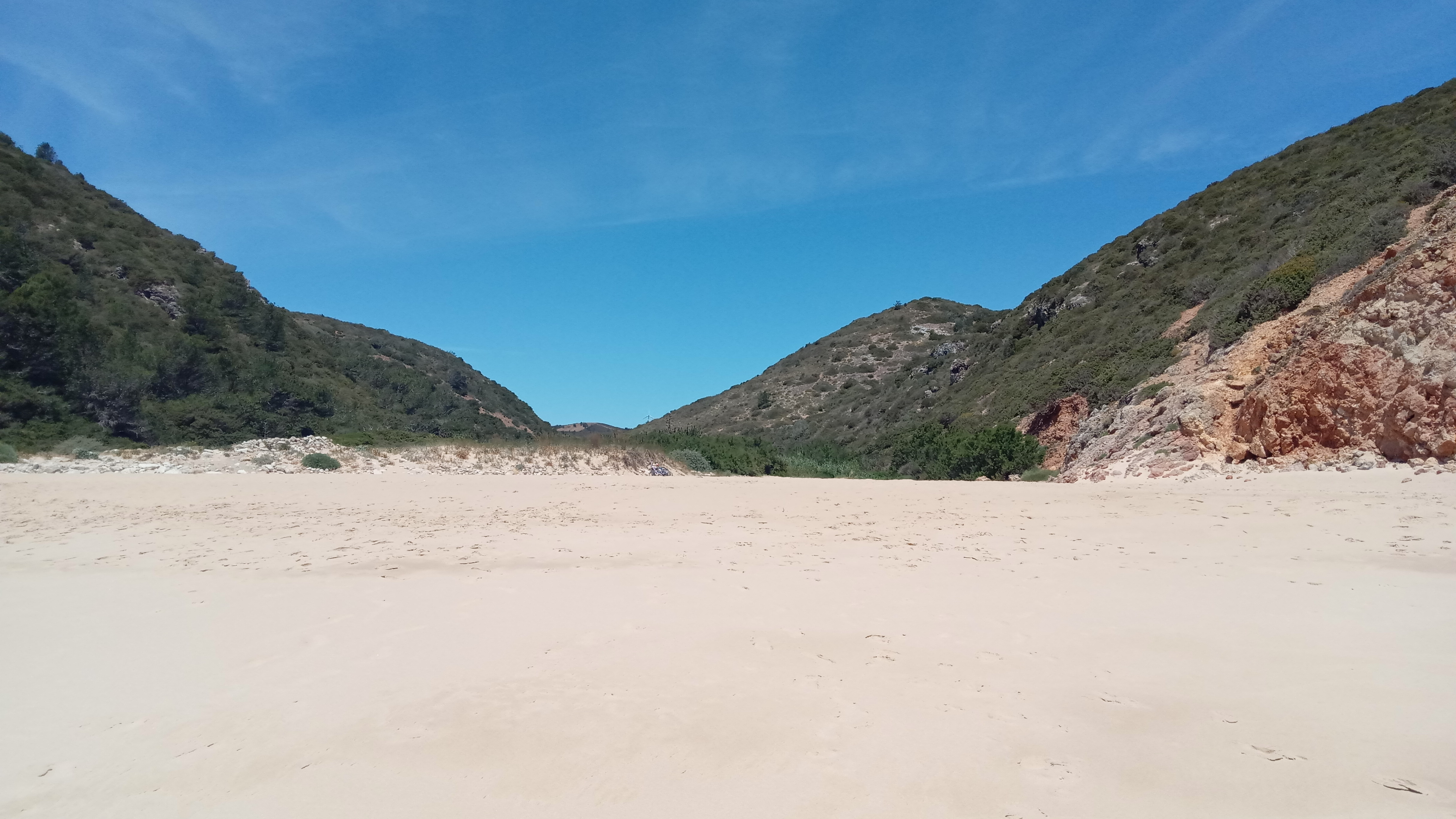 Praia da Figueira is a very beautiful beach accessible only by foot or bycicle. Never too crowded and very clean sandy beach. There is also a hiking way up to a ruin with a stunning view over the seaside. Traveling with a camper, it is best to park at the camperpark in Figueira. Very nice hosts and good Service. In Figueira you can get very nice pizza at O Sabor da Alegria.