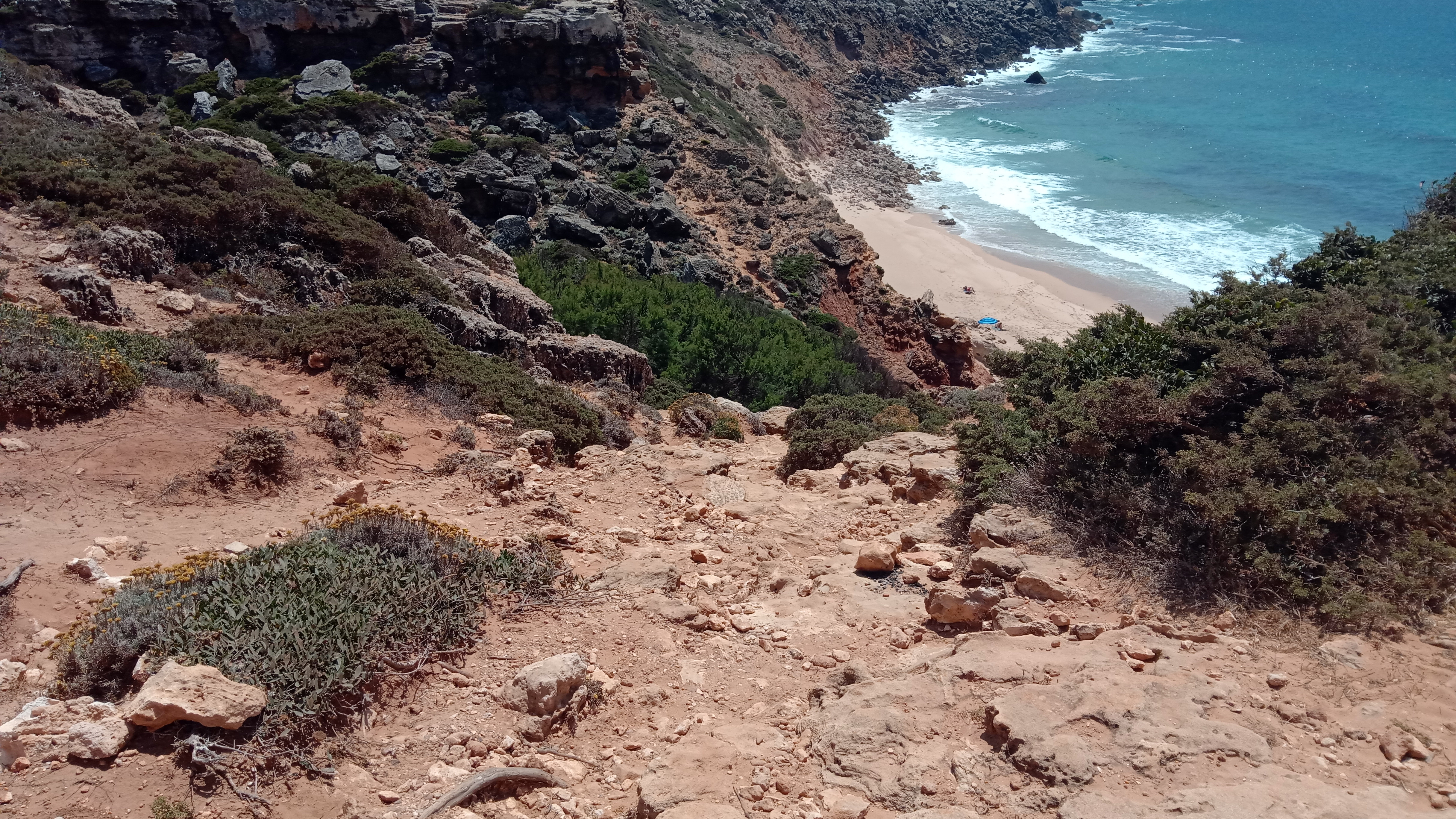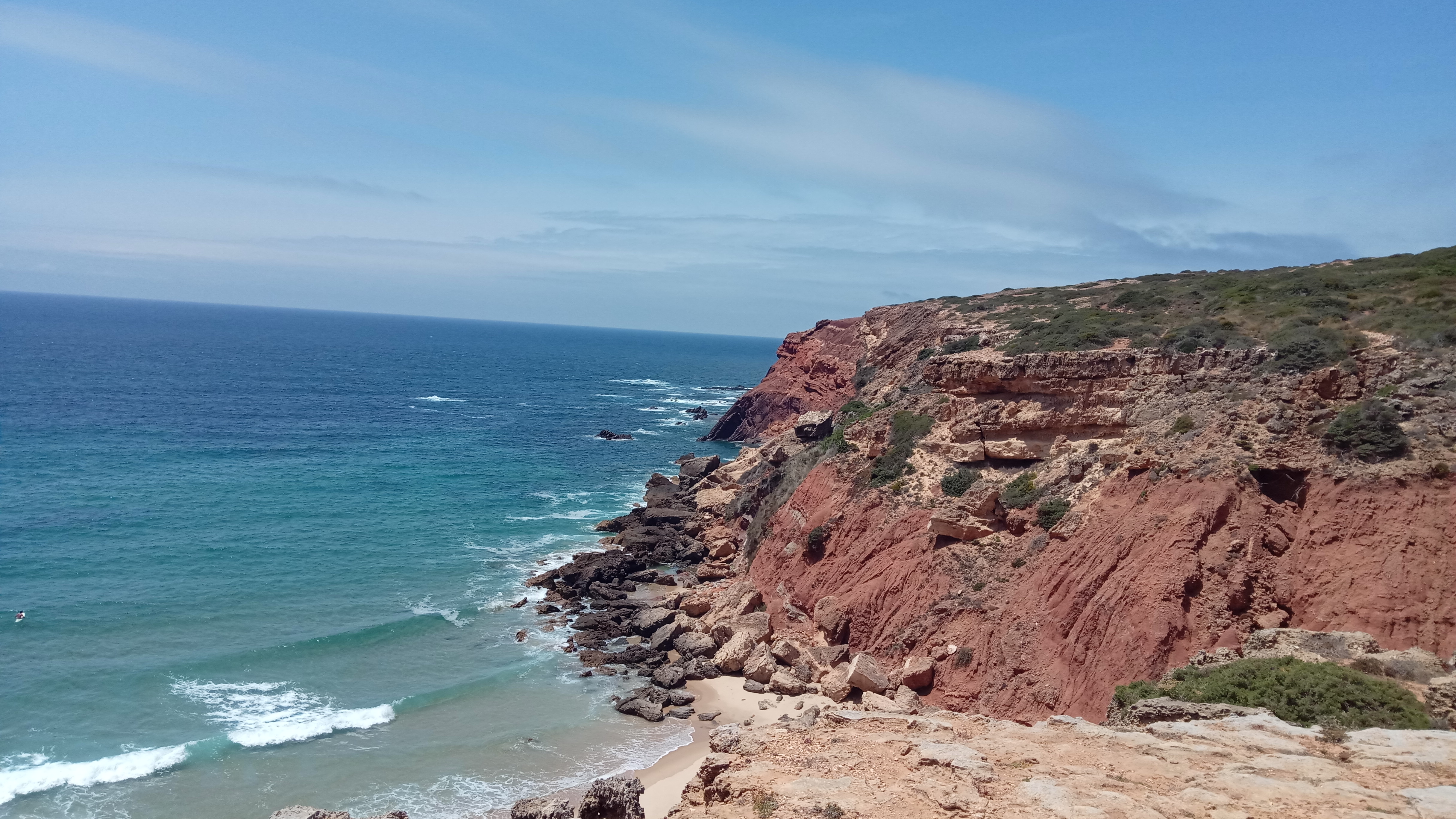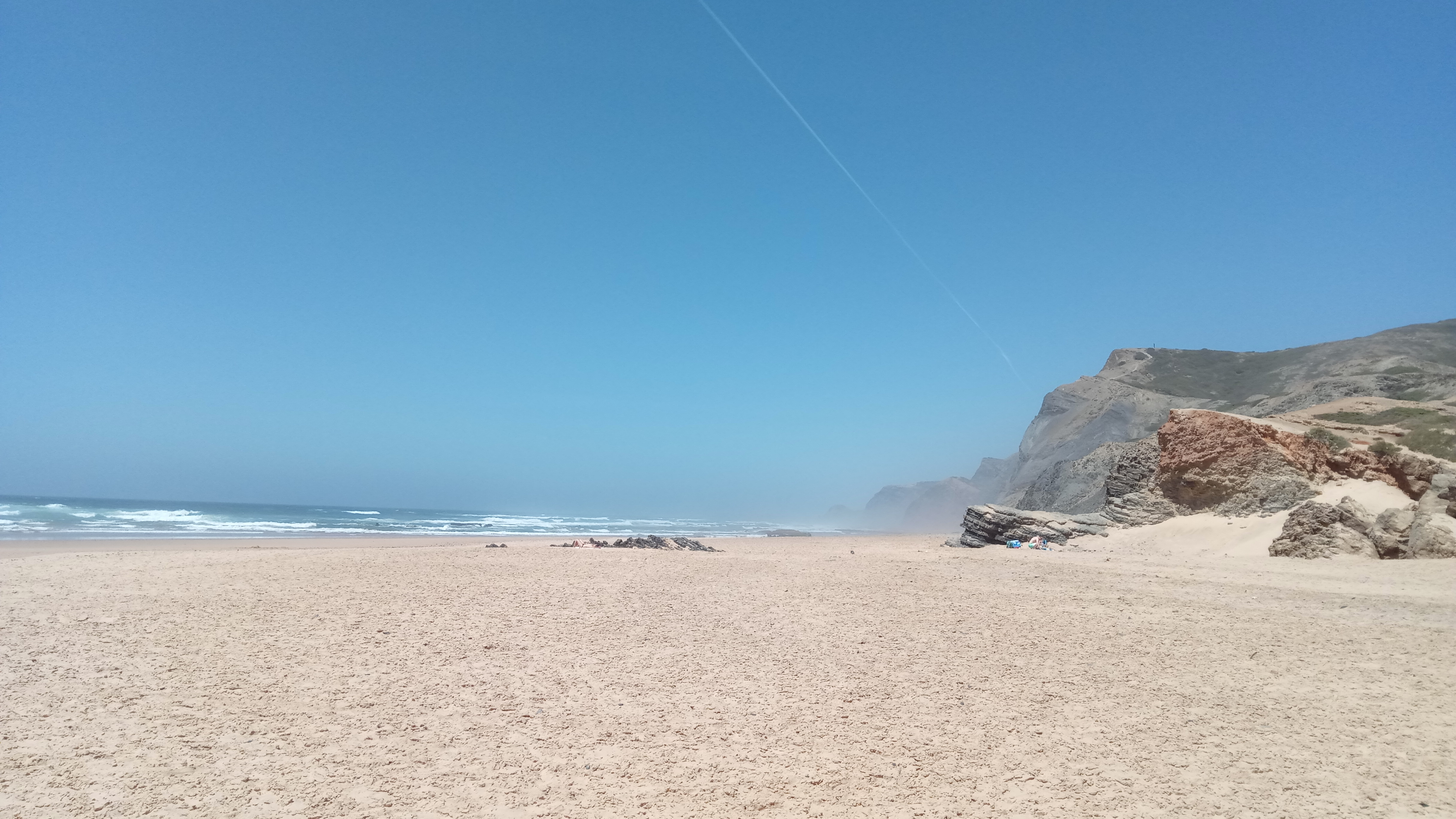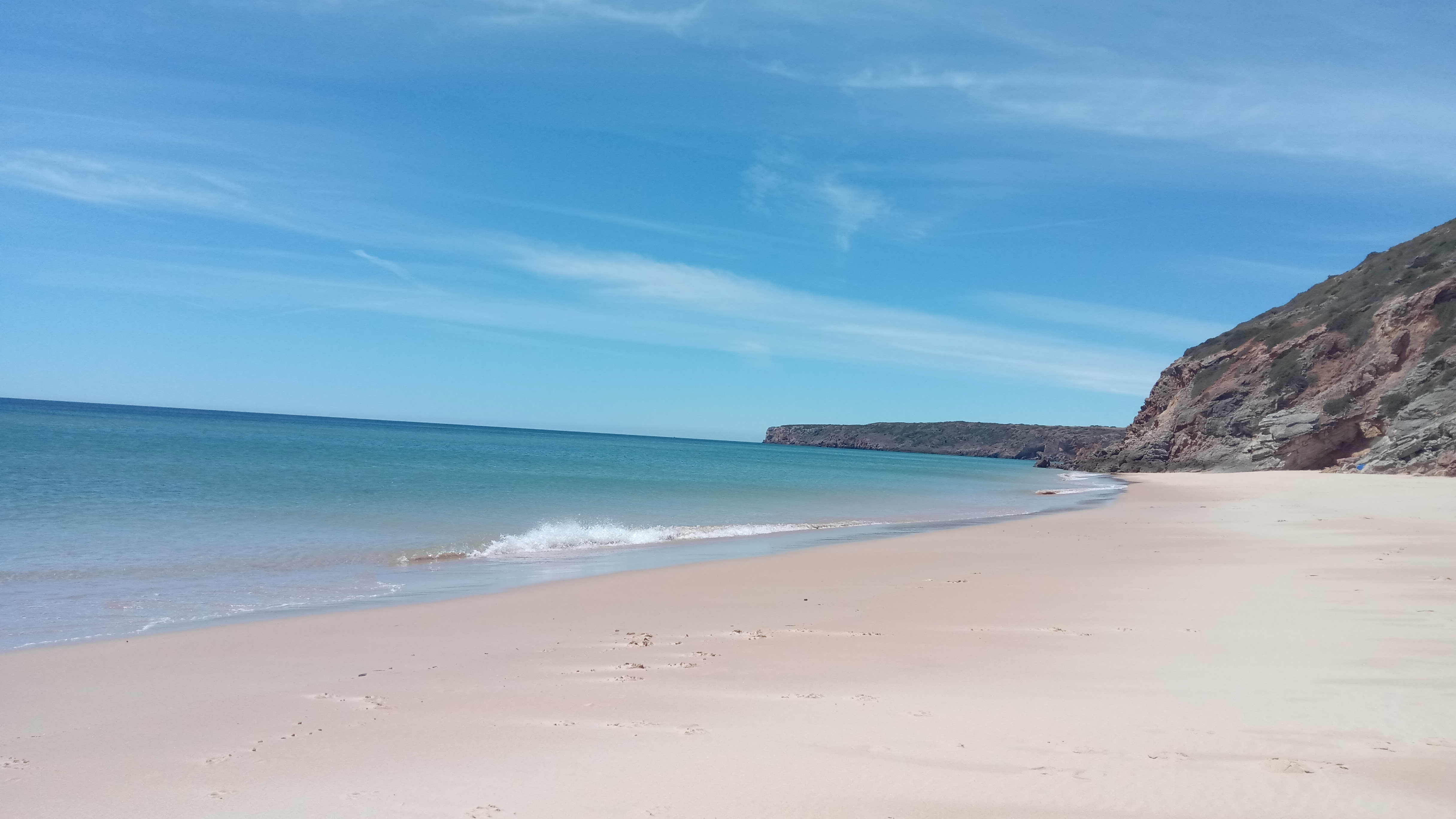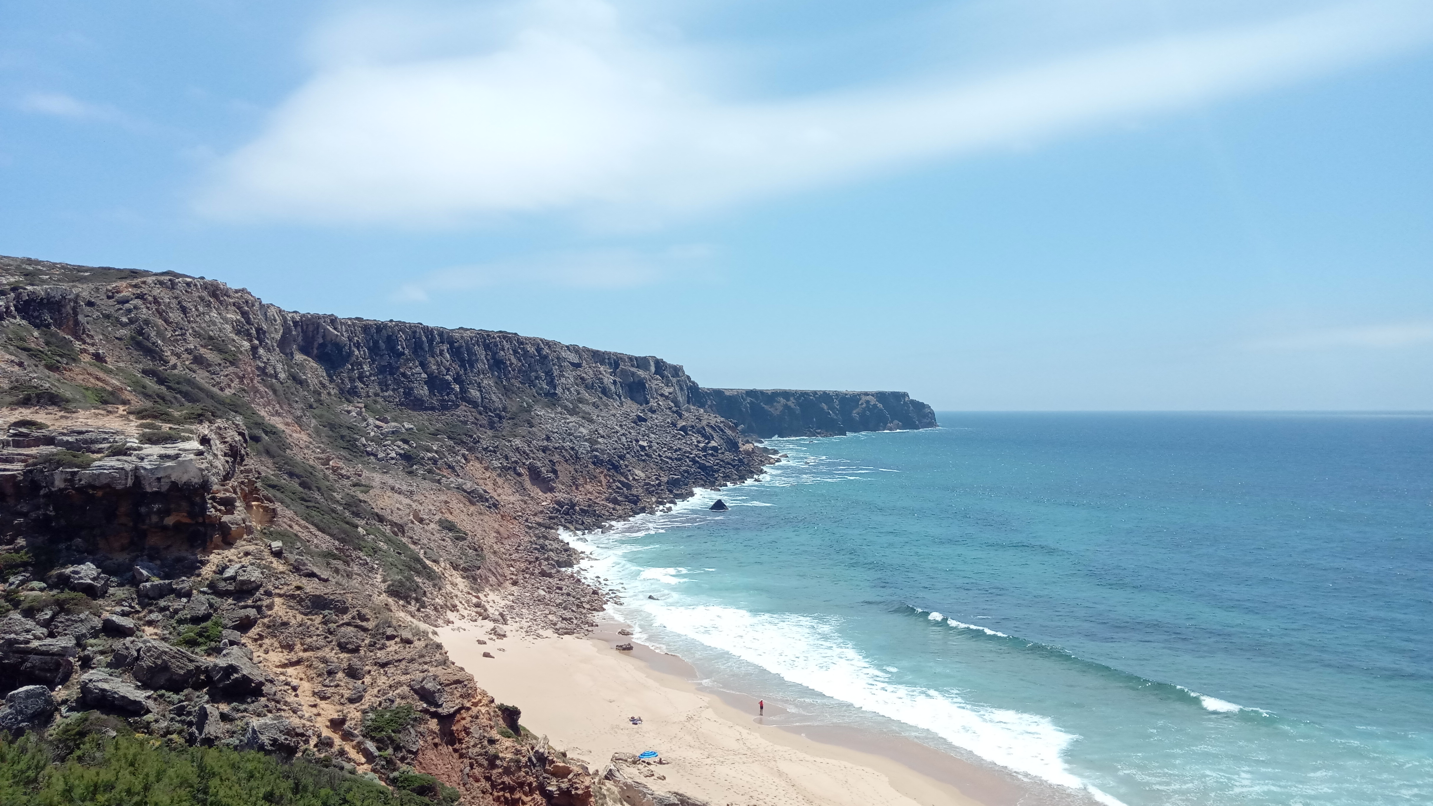 Praia do Telheiro is an absolut favorite in the Algarve! Situated next to Sagres you have a great view from the parking lot to the Cabo de Sao Vicente. The way down to the beach is very tricky. But the stunning beach makes up for it 100%! Almost nobody there – like your own private beach!