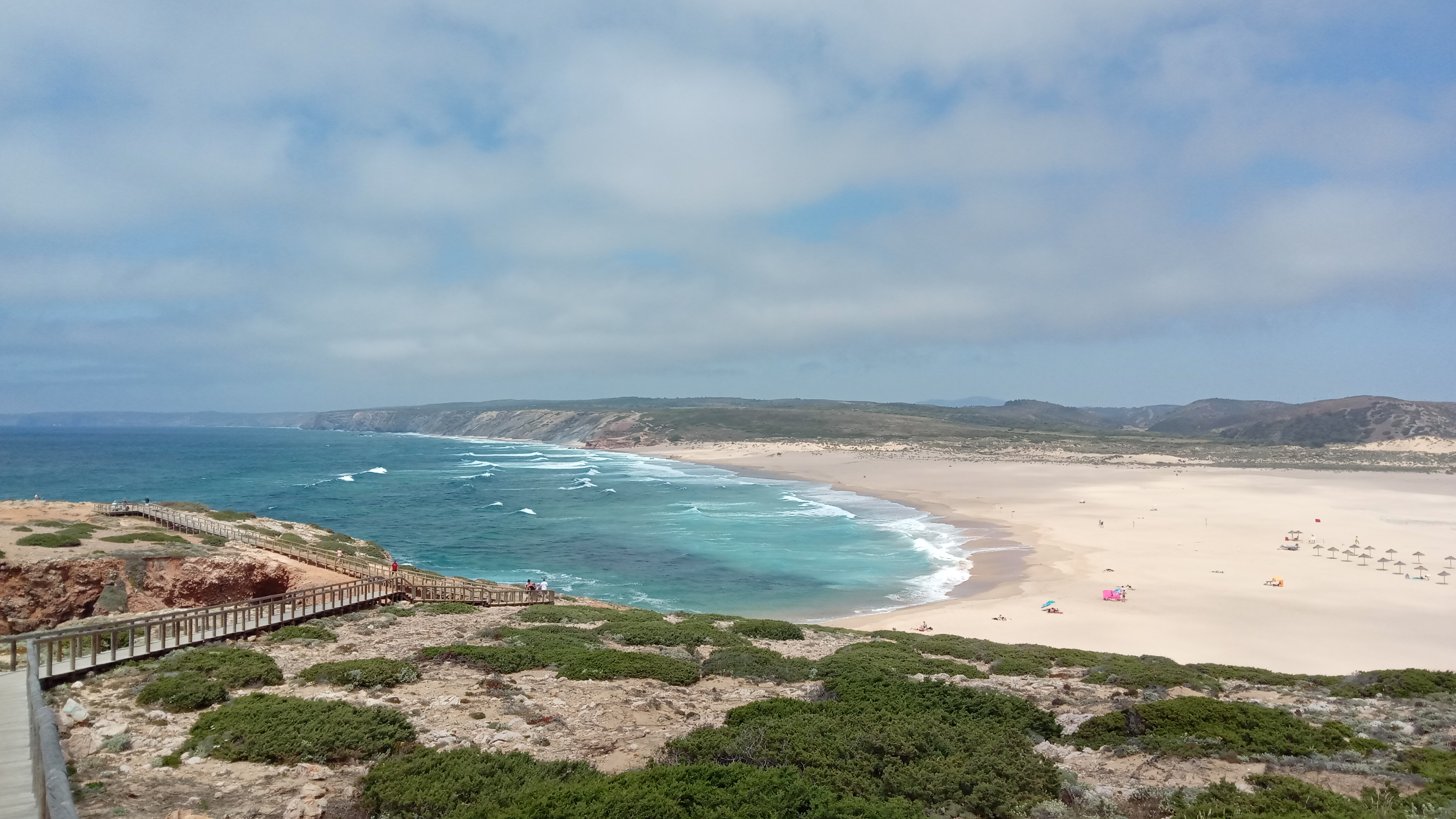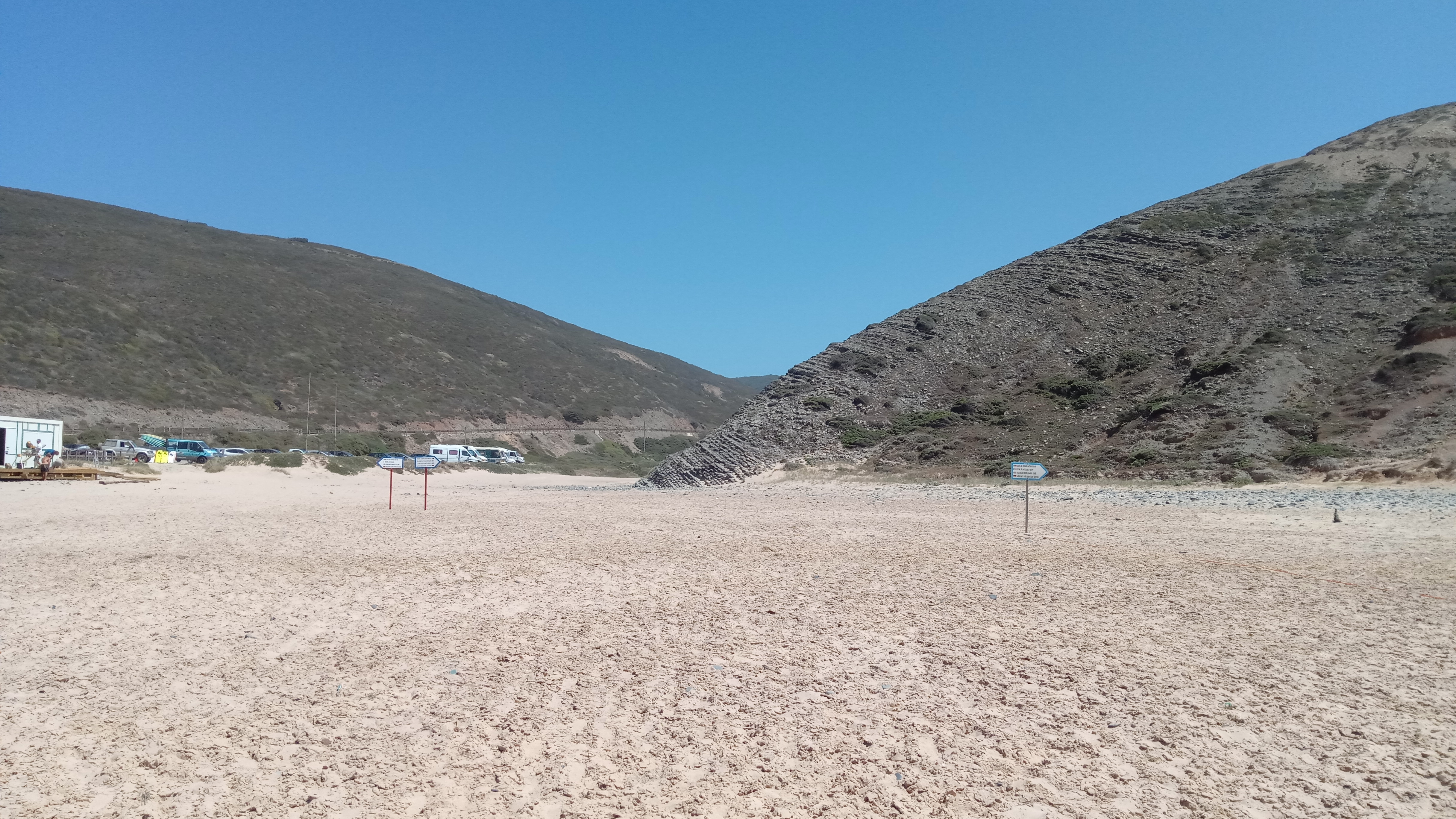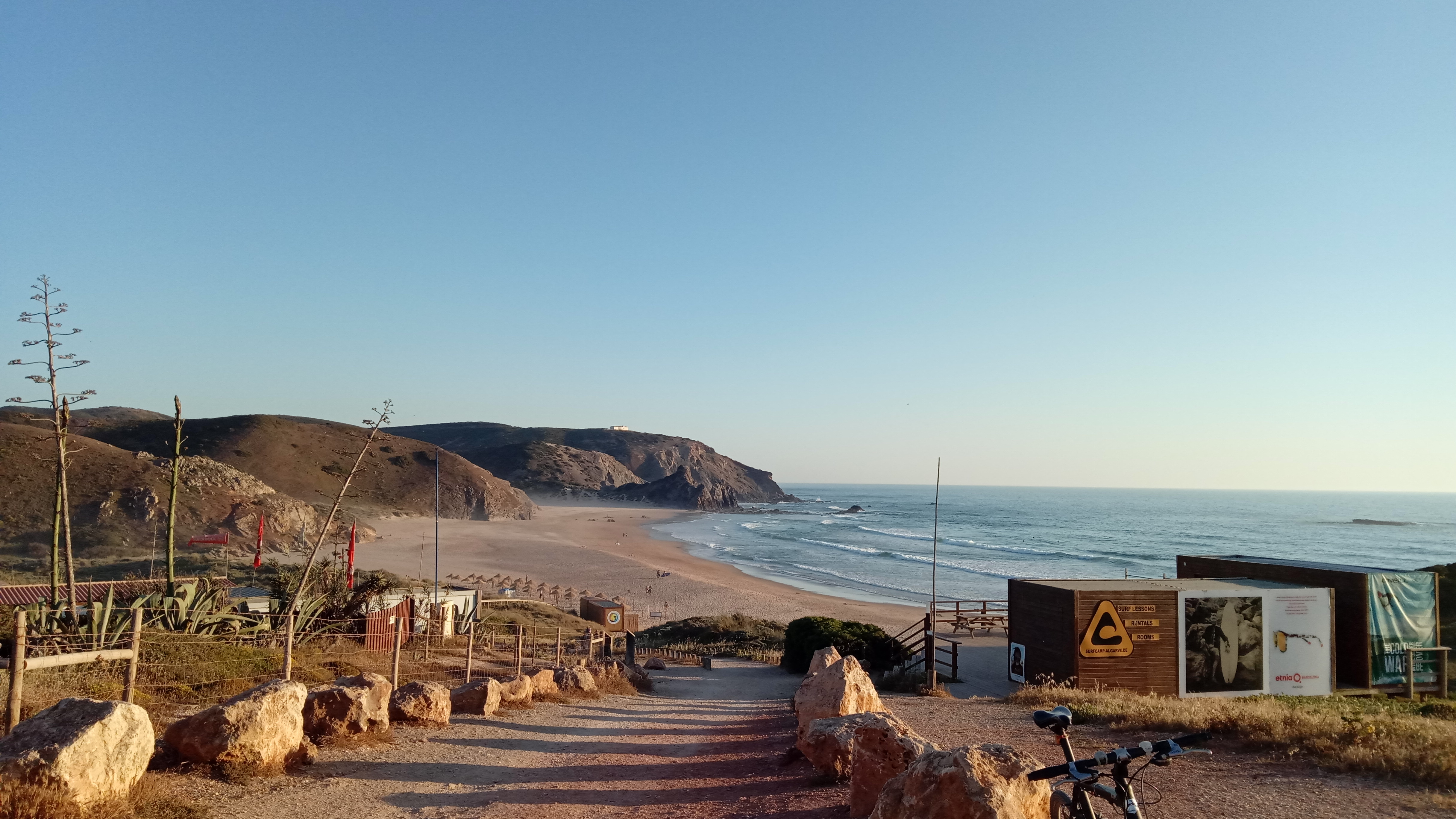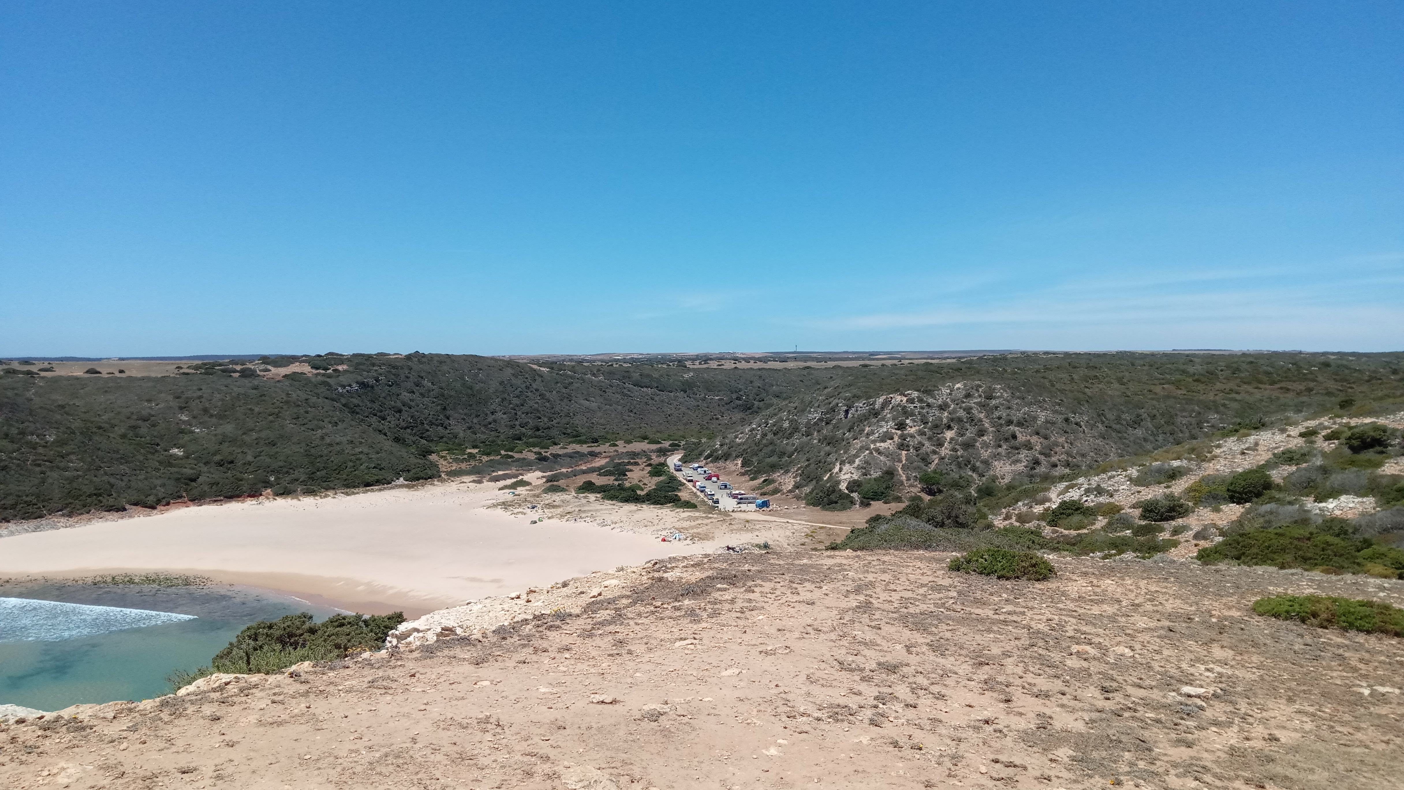 Praia da Cordoama erreicht man über Vila do Bispo. Ein schöner, breiter Strand optimal für Surfer. Der Parkplatz toleriert in der Nebensaison Camper.