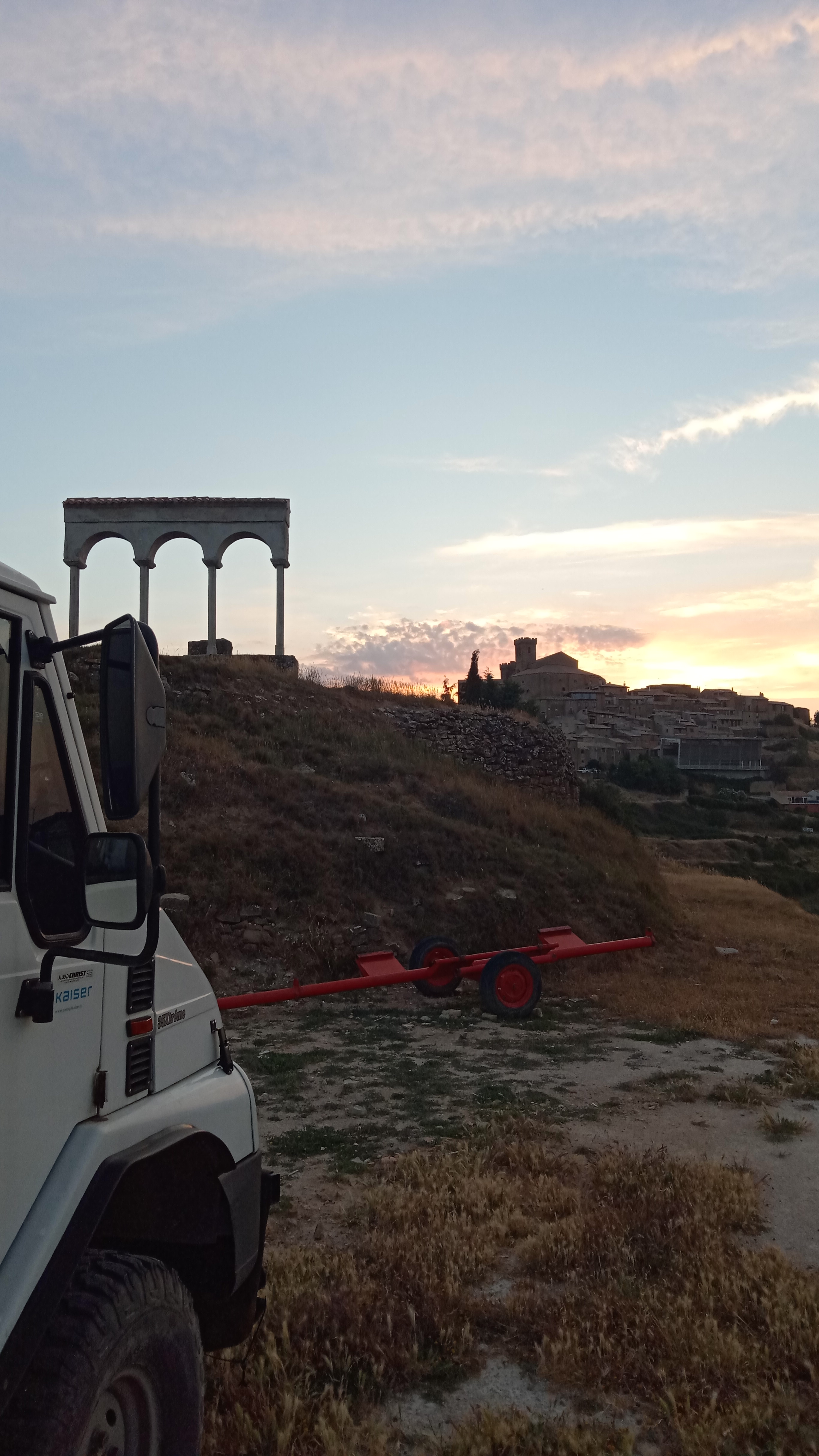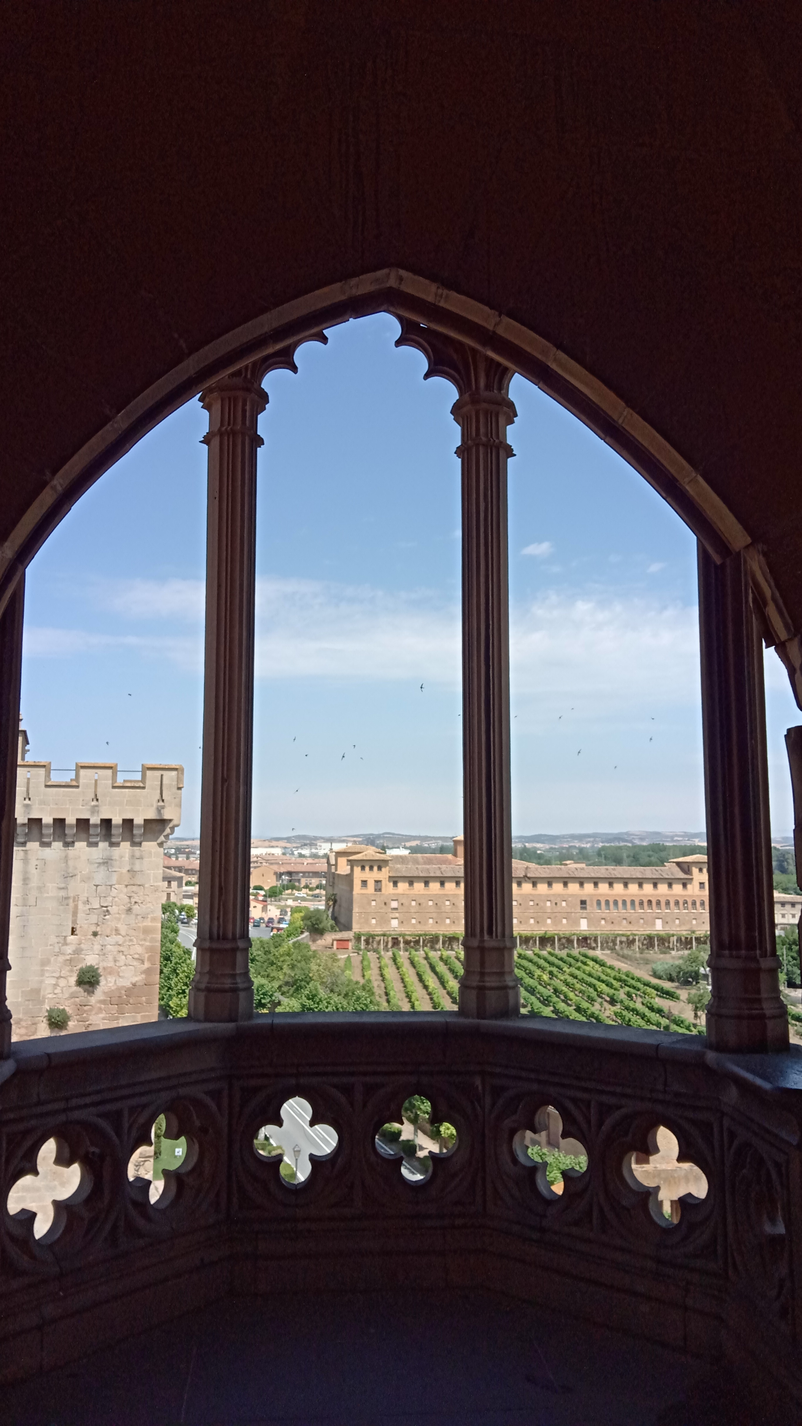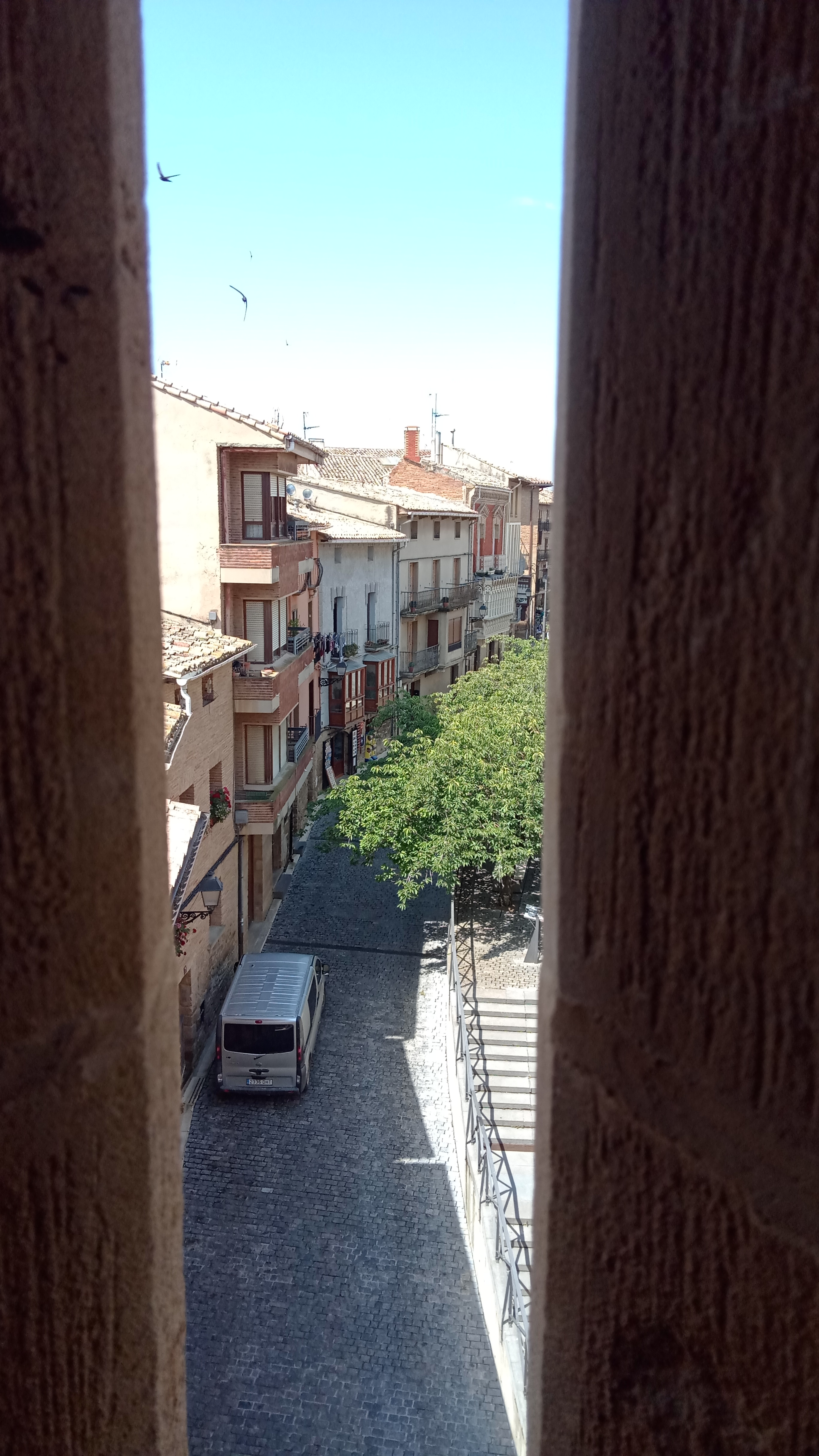 On our search for the next overnight stop we drive to a lake. The parking lot had broken glass from a car window on the Ground and apart from that didn’t really meet our expectations. So we head on to Olite. The spot is next to the main street but still quite. The next morning I see a uniform outside Baerbel and got up to check what was going on. Turns out, that the Police officers couldn’t make out where we are coming from y Looking at our number plates ;O). So I had a Little Chat with them – Always good when you speak the same language ;o). The recommended us to drive to Ujué which is About 20 km away. We thanked them and got back inside. As we got up rather early due to this unexpected Encounter, I decide to check out Olite. The kings Palast is huge and for 3€ you can visit it. There is no furniture left but the view on the villageof Olite and the surrounding is making up for this big time. To climb the Towers o take some Pictures really got me on the Edge – but it is important to get over your borders from time to time! the Villageof Olite is very Beautiful. Authentic Little alleys with Stone dominate the look. Of Course I had to go into a Vinoteca, if you’re here already ;O). I left with a bottle of Pacharan, the national drink in Navarra made with blackthorn. Very succesful Sightseeing.