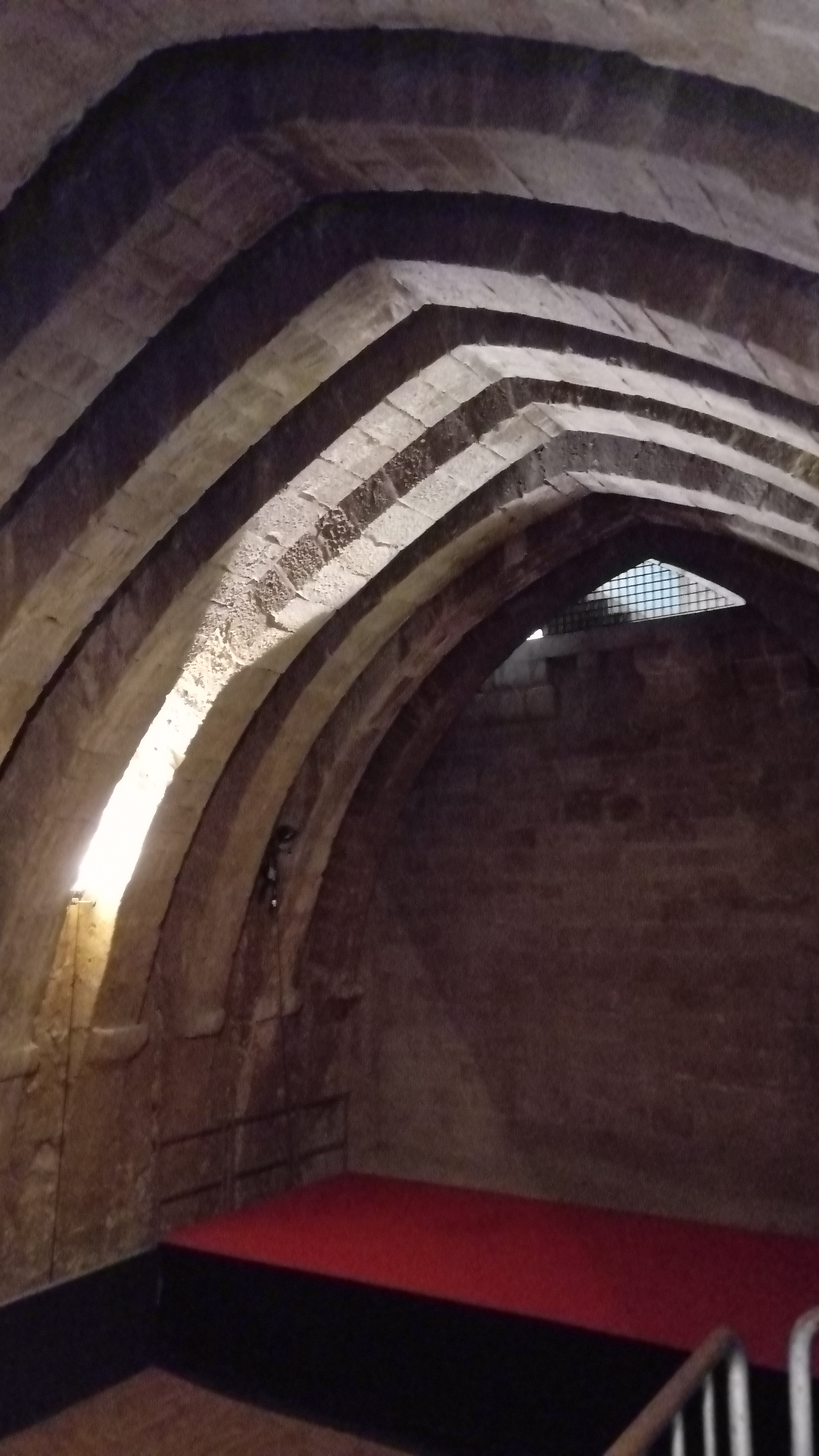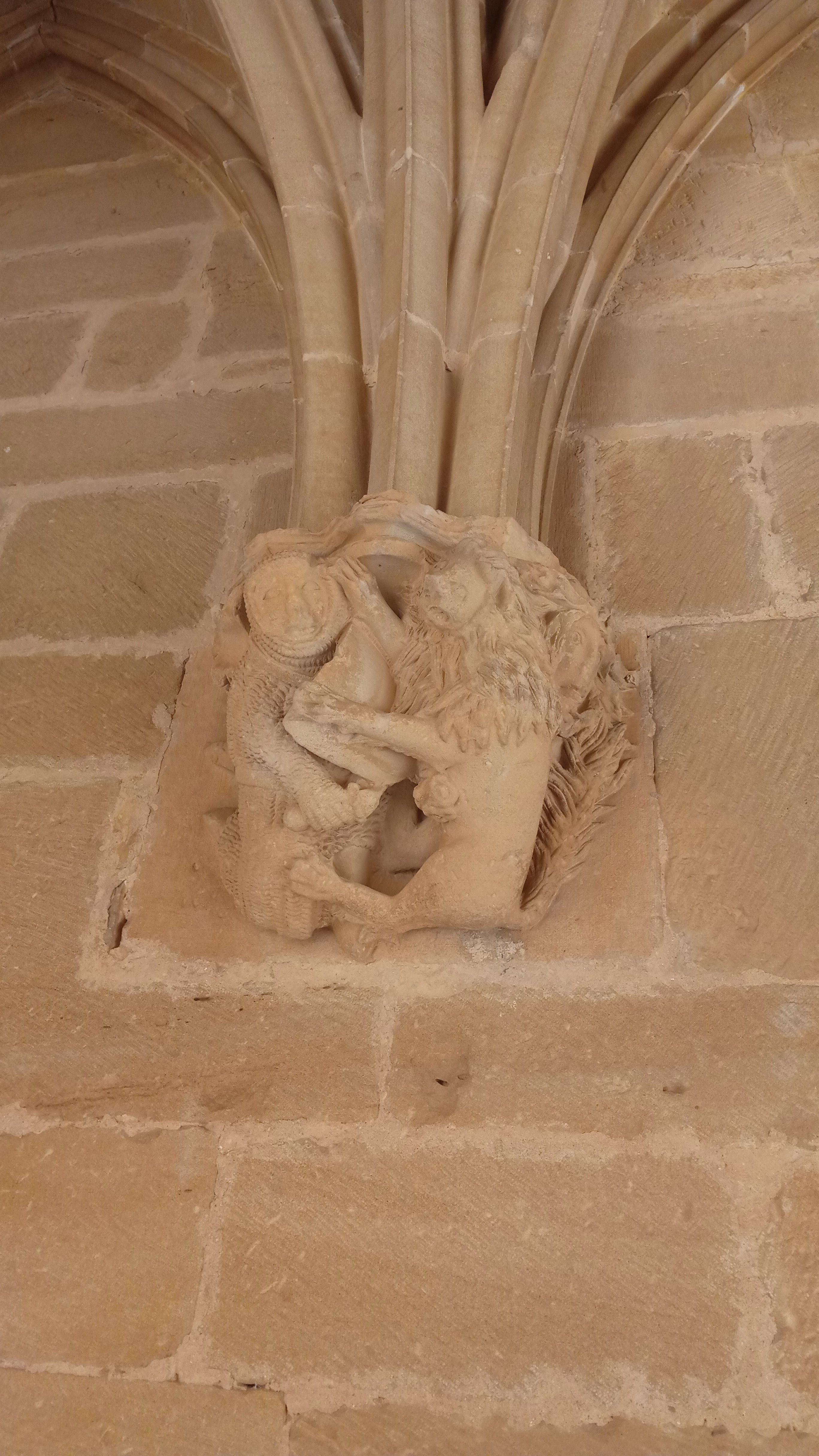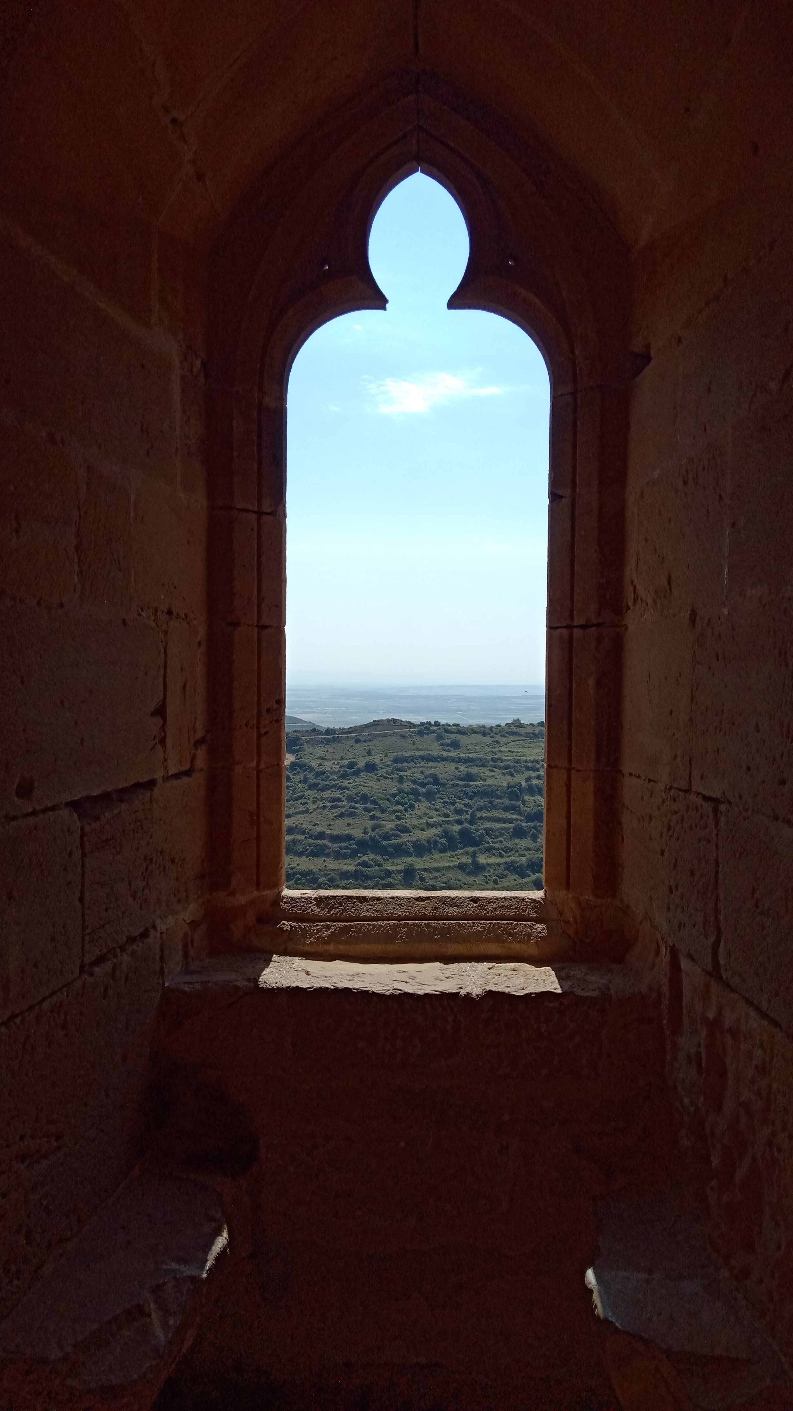 On our search for the next overnight stop we drive to a lake. The parking lot had broken glass from a car window on the Ground and apart from that didn’t really meet our expectations. So we head on to Olite. The spot is next to the main street but still quite. The next morning I see a uniform outside Baerbel and got up to check what was going on. Turns out, that the Police officers couldn’t make out where we are coming from y Looking at our number plates ;O). So I had a Little Chat with them – Always good when you speak the same language ;o). The recommended us to drive to Ujué which is About 20 km away. We thanked them and got back inside. As we got up rather early due to this unexpected Encounter, I decide to check out Olite. The kings Palast is huge and for 3€ you can visit it. There is no furniture left but the view on the villageof Olite and the surrounding is making up for this big time. To climb the Towers o take some Pictures really got me on the Edge – but it is important to get over your borders from time to time! the Villageof Olite is very Beautiful. Authentic Little alleys with Stone dominate the look. Of Course I had to go into a Vinoteca, if you’re here already ;O). I left with a bottle of Pacharan, the national drink in Navarra made with blackthorn. Very succesful Sightseeing.