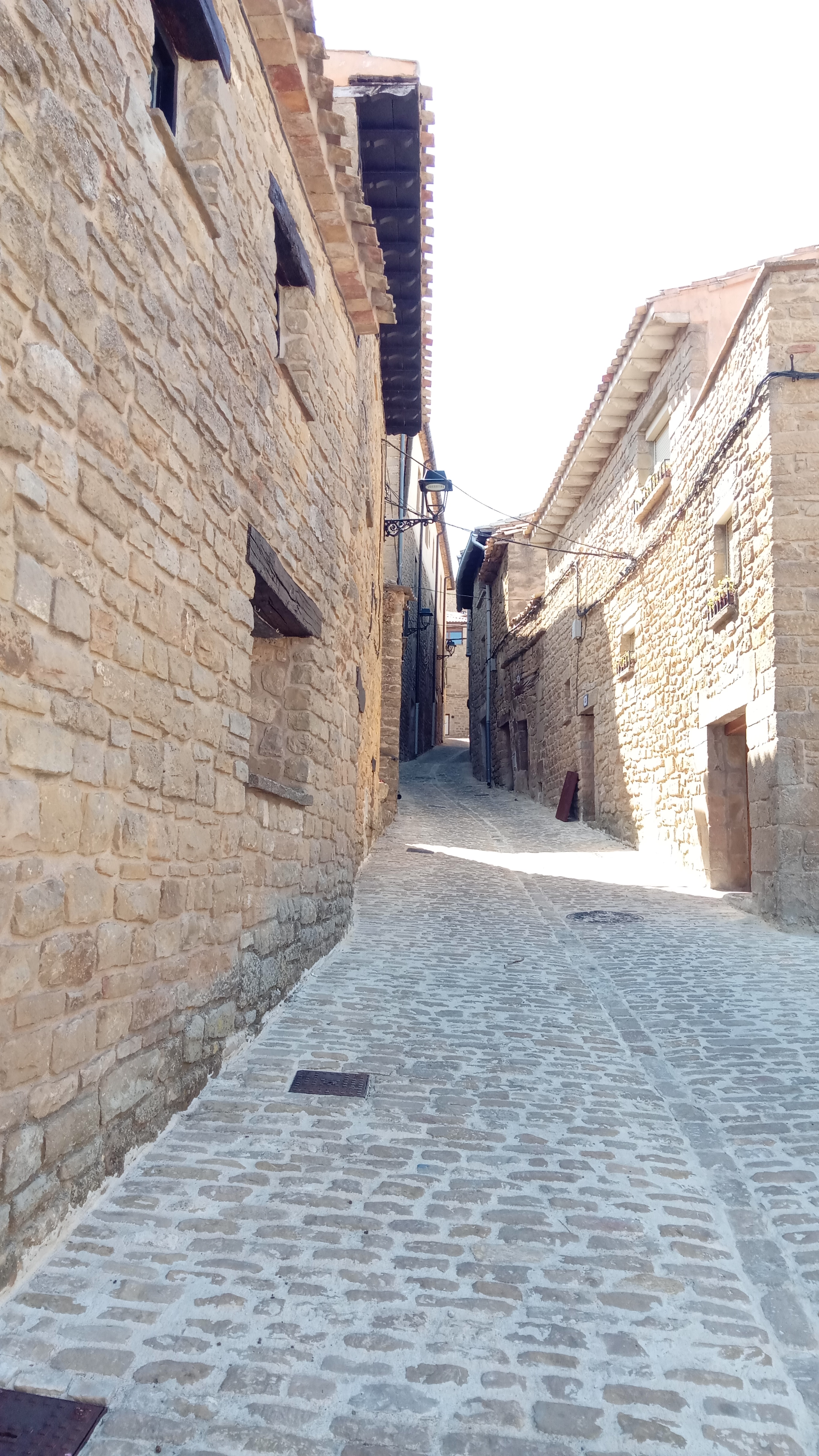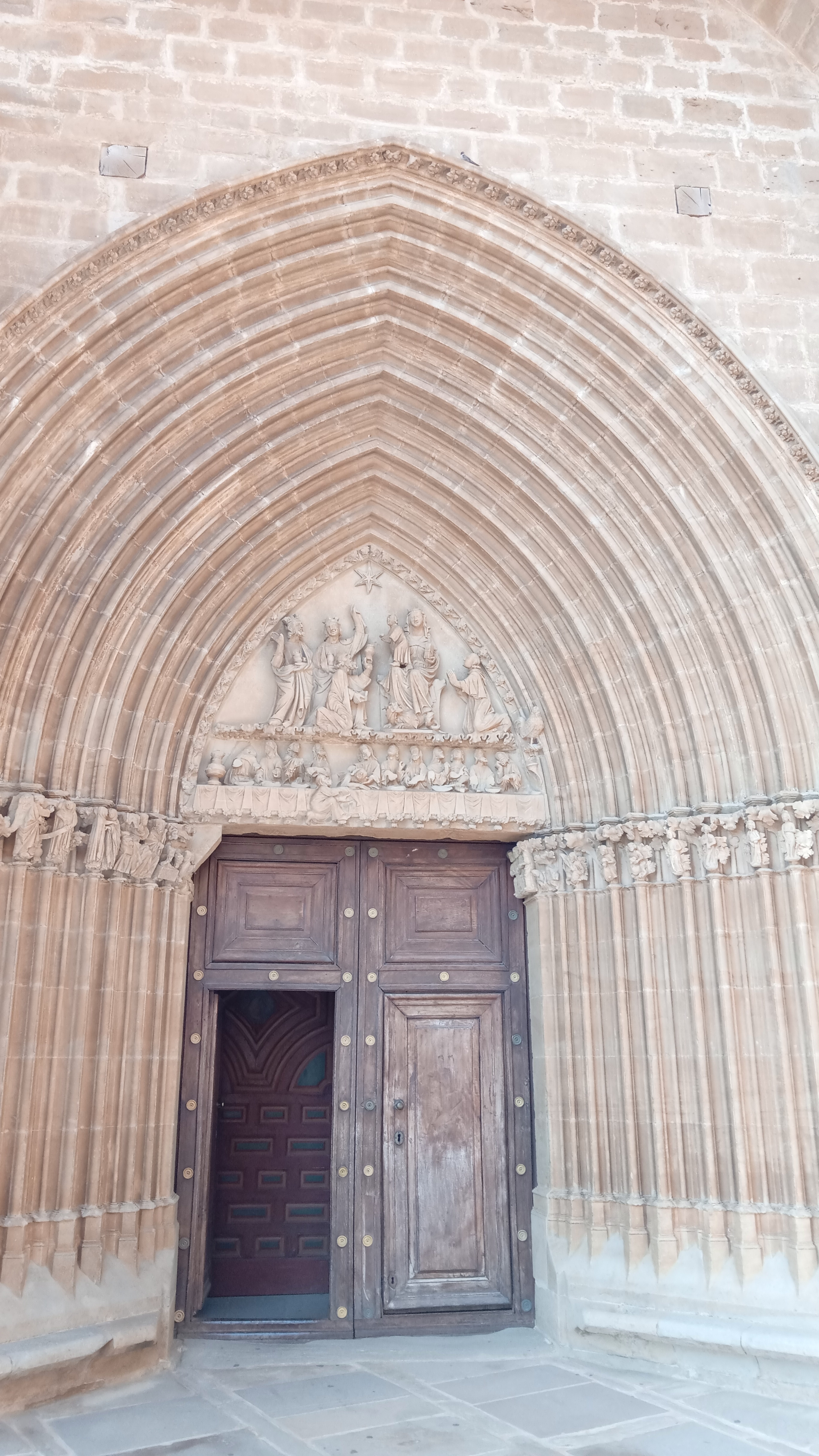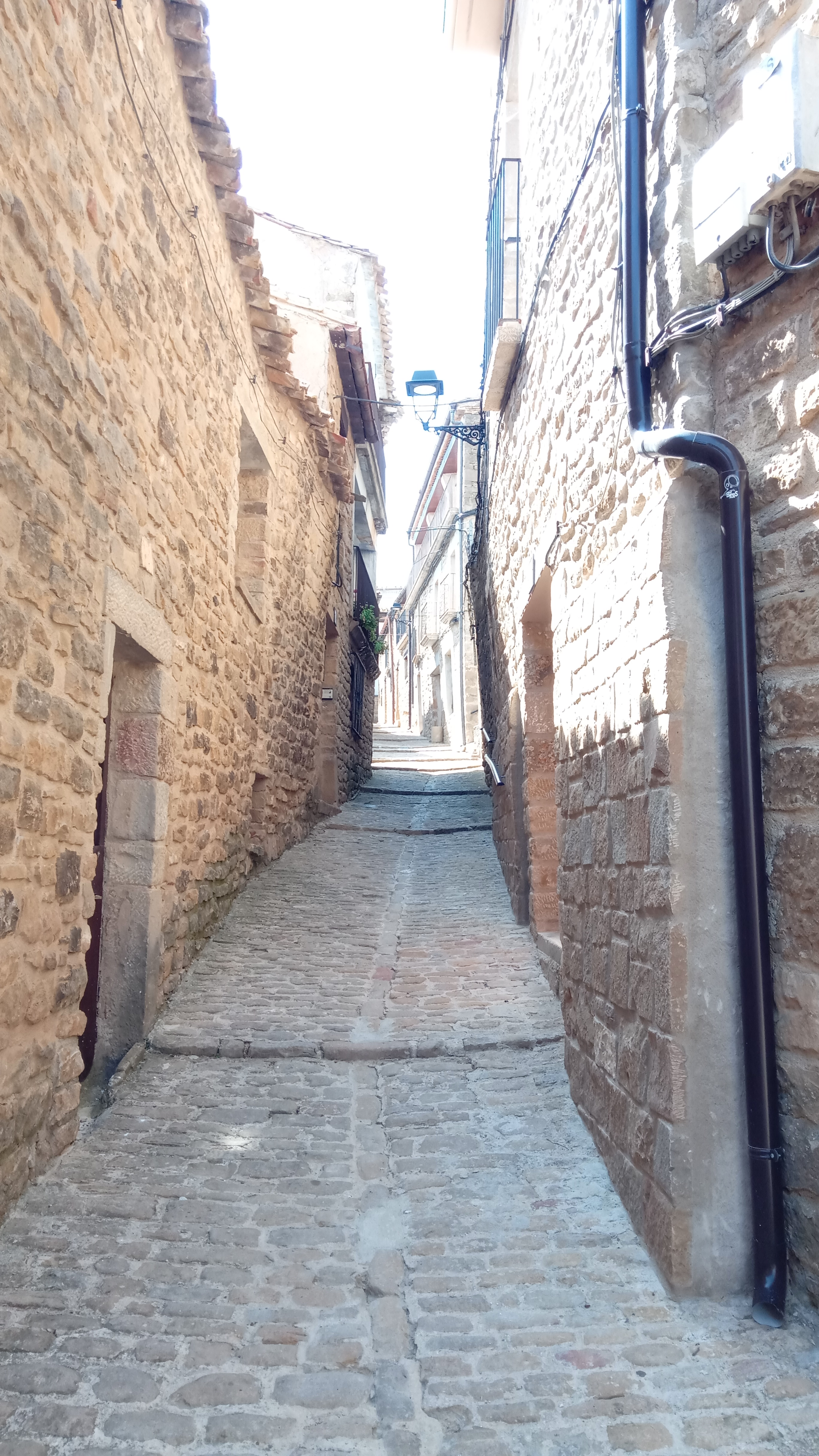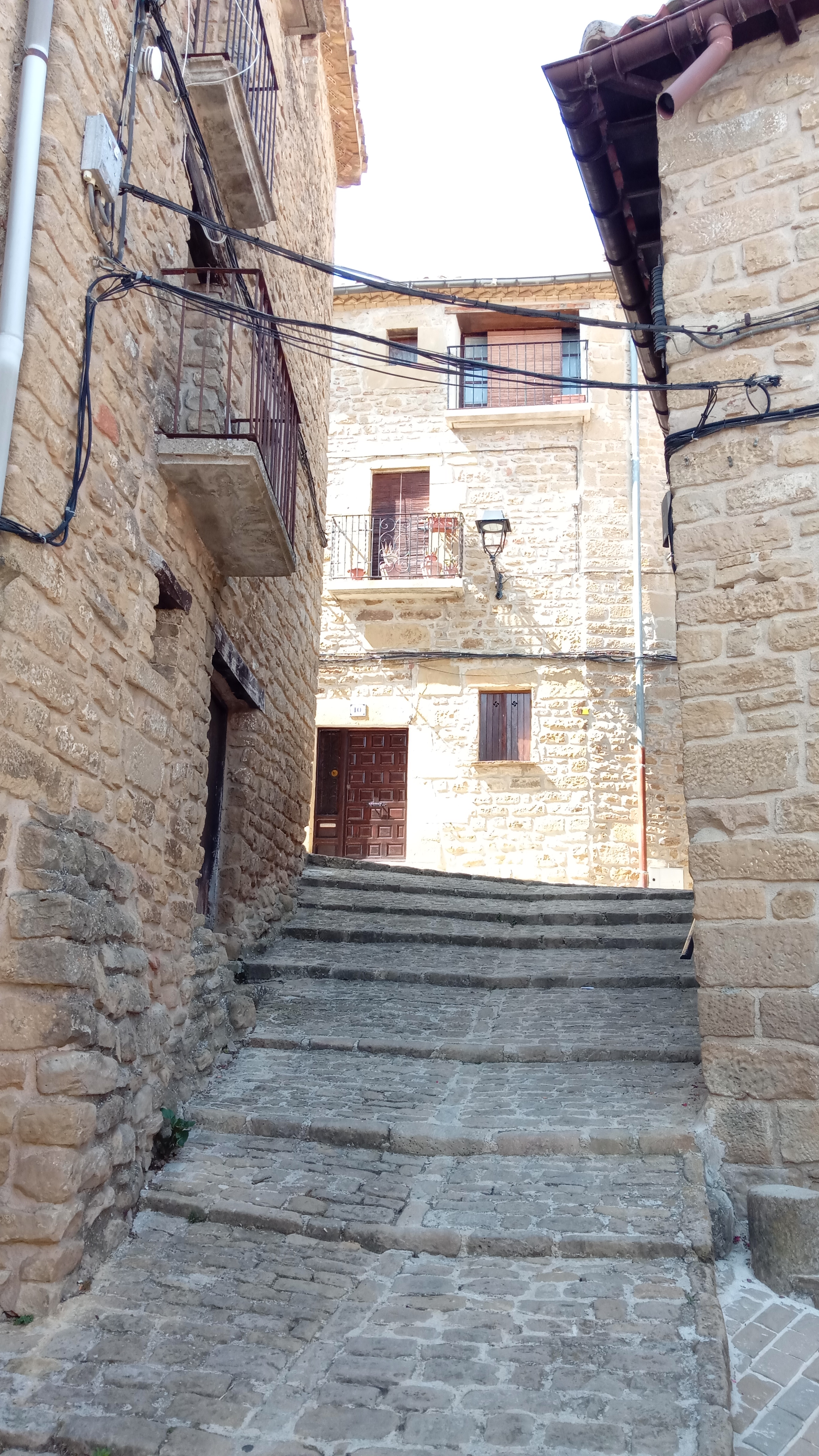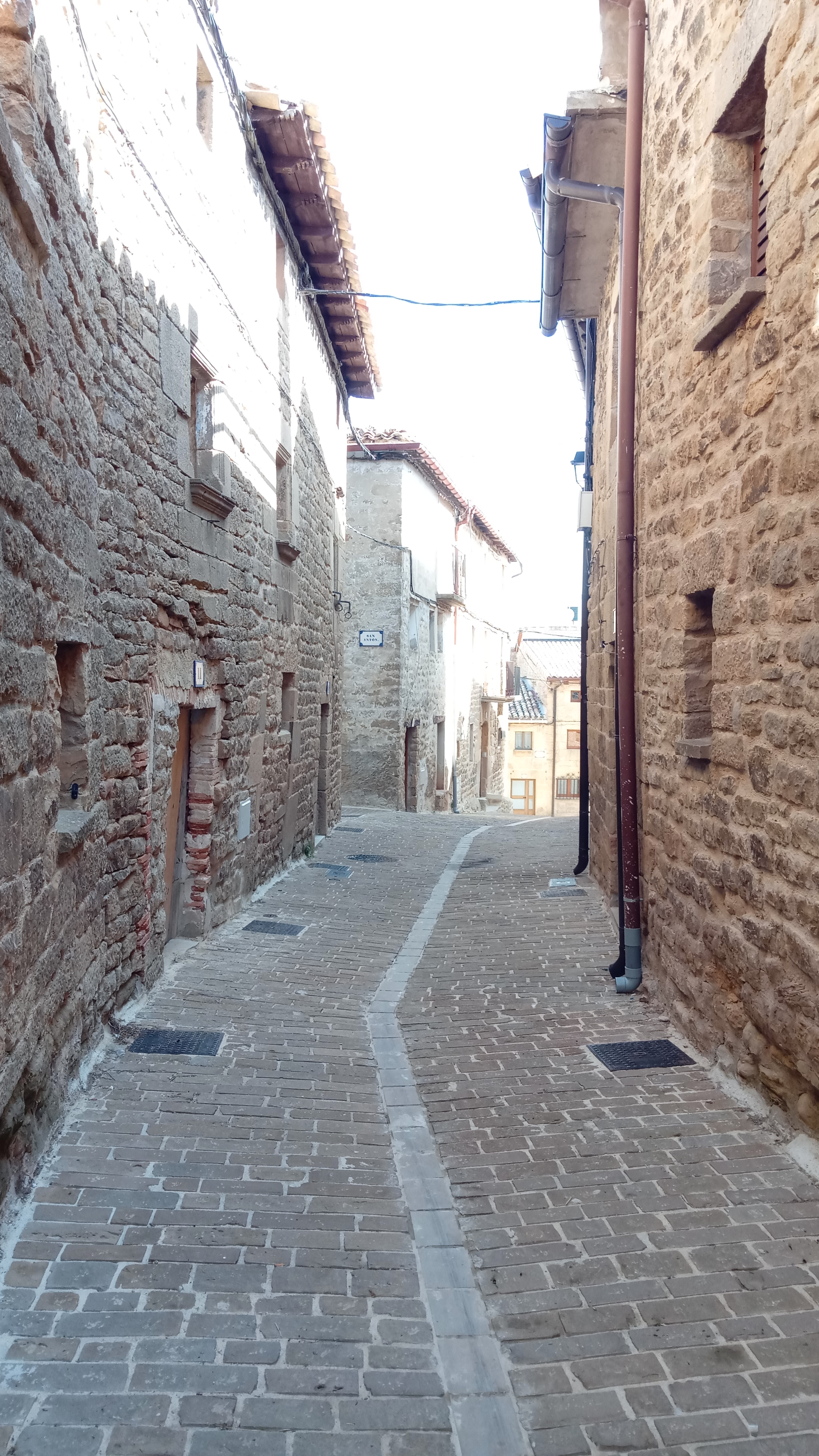 Naturally we take up the recommandations from the Police officers and drive to Ujué. The drive takes us up a mountain. The parking lot is below the village behind the ruins of a church. The view is stunning! Besides the village all you see is mountains and terraced fields. really beautiful! The path up to the village is very steep – 34° dn’t really help either – but the plasterstone path leading its way between the cute stone houses is worth it all the way. The big church Iglesia de Santa Maria wabuilt in 16th century and can be visited for free. Again, the view is Incredible – the Building itself stunning. There are 3 restaurants in Ujué where you can eat the traditional Migas del Pastor. A souvenir shop offers sugar coated almonds, wine, pastry and sanctified figures. Ujujé was honored one of the most beautiful villages of Spain – absolutely deserves it!