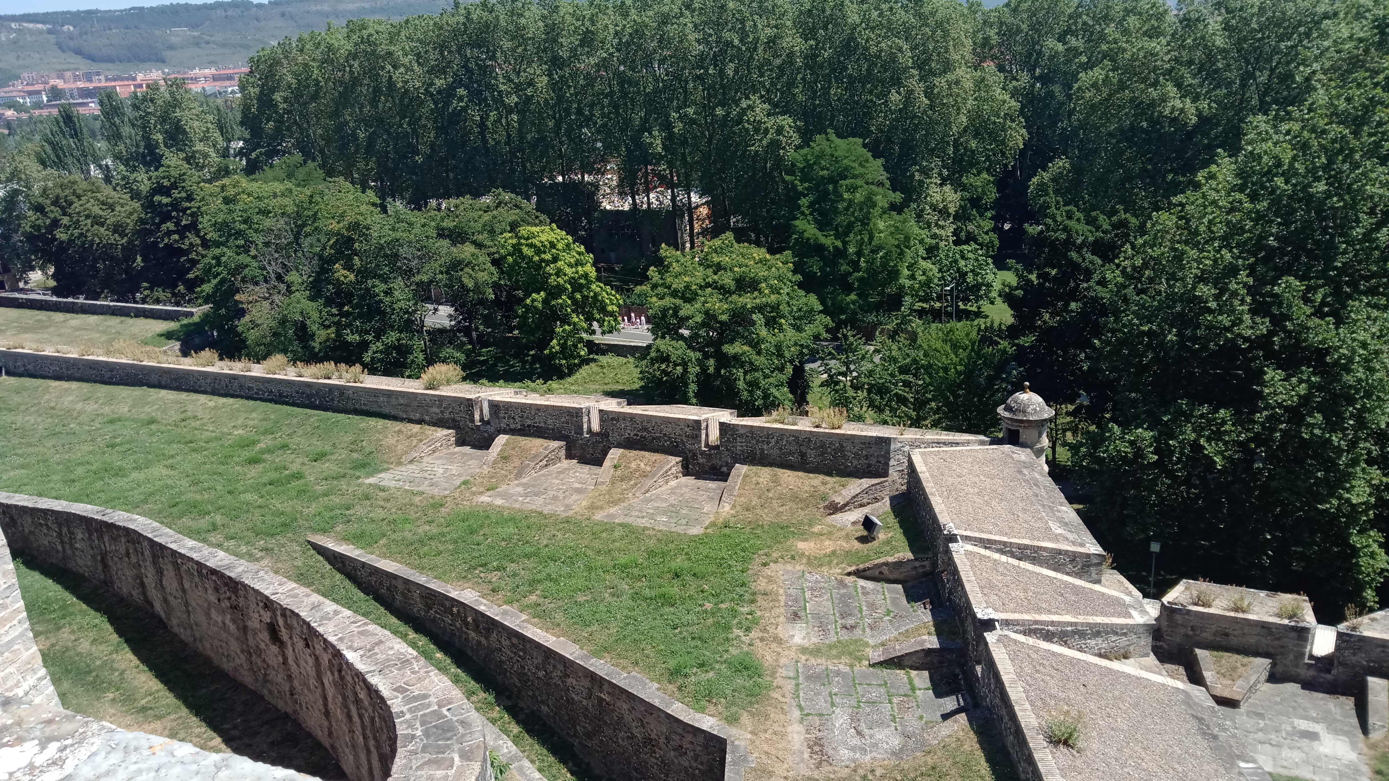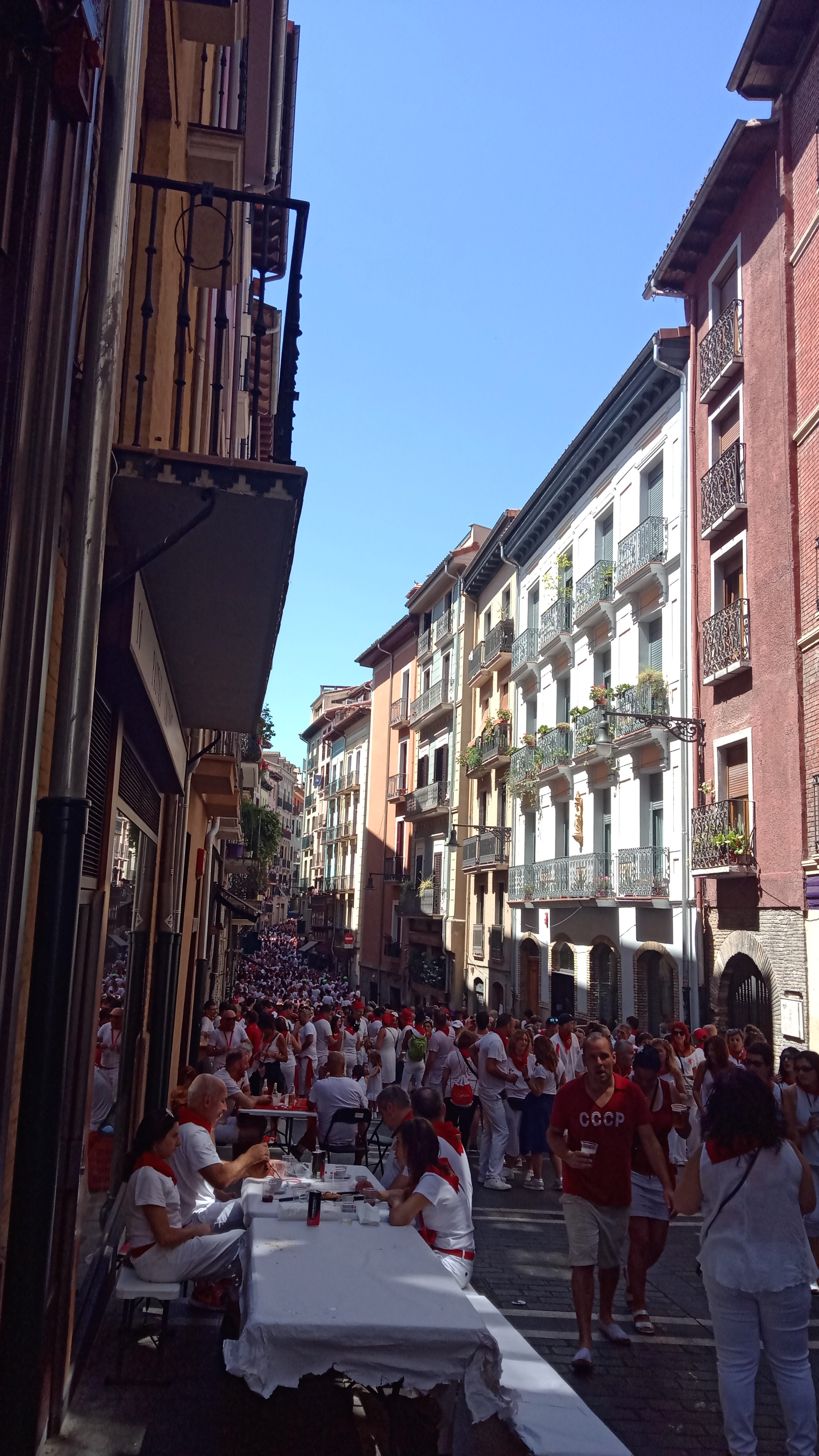 Zufall hilft uns bei der weiteren Planung. Da wir in der Nähe von Pamplona sind, lassen wir uns den Start des San Fermín nicht nehmen. Da das Festival erst am 6. Juli startet, steuern wir den einzigen Campingplatz in Pamplona an. Wow, hier spürt man schon, dass das San Fermín viele Besucher anzieht. Der Campingplatz stellt extra ein riesen Festzelt auf, da sich die Fanatics, eine Reisegruppe, die sich auf die grossen Feste in Spanien spezialisiert hat. Gäste aus aller Welt sind vertreten: Australien, Neuseeland, England, Schottland, Frankreich, Deutschland – alle hier zum Feiern. Ja, die Tage waren sehr unterhaltsam für uns :o) – und dann kam der Samstag! Die Tradition erwartet weisse Kleidung mit einem roten Halstuch – Kleidung ja, Halstuch nein ;o) Wir teilen uns ein Taxi mit einem Pärchen in das Zentrum von Pamplona. Was uns da erwartet, hätten wir uns nie vorstellen können!! Tausende von Leuten in Weiss / Rot gekleidet strömen zum Plaza del Castillo, wo um 12.00 das San Fermín offiziell startet. Wir folgen den Menschenmassen, stellen aber schnell fest, dass die Wasserspritzpistolen, welche alle bei der Hitze dabei haben, kein Wasser sondern Sangría beinhalten. Also doch lieber etwas auf Abstand. Wir geniessen die Show und als der Countdown losgeht, sind die Leute nicht mehr zu bremsen – was für eine positive Energie!! Wir lassen uns vom Menschenstrom mitnehmen in die kleinen Gassen Pamplonas. OMG – da werden Eimer gefüllt mit Wasser oder Sangría von den Balkonen auf die Leute in den Gassen geschüttet!!! Ausweichen ist nicht, da die Gasse zu bersten voller Leute ist – also hoffen, dass man trocken durchkommt… Vorbei an der Kathedrale entscheiden wir uns, den Encierro (der bekannte Stierlauf vor dem Stierkampf), welcher am Sonntagmorgen um 8.30 Uhr stattfindet, auszulassen, da es einfach viel zu viele Leute für uns sind. Daher machen wir uns auf in die Ställe der Stiere. Der Weg dahin führt uns an einer wunderschönen Stadtmauer vorbei hinunter zu den Ställen. Was für schöne Tiere – mit gemischten Gefühlen wandern wir durch die Ställe. Tradition ist Tradition; man kann darüber denken was man möchte – ich persönlich befürworte die Salteros – googelt das mal unterhaltsam und kein Tier stirbt. Beim Rückweg ins Stadtzentrum passieren wir die 800 Meter des Encierros – da auch nur im Ansatz was zu sehen als Zuschauer bedeutet, die Nacht an der Strecke zu campieren. Nein, das machen wir definitiv nicht. Wir schlendern weiter Richtung Park, weg von den Menschenmassen. Überall kostenlose Konzerte, Marktstände und Restaurants. Wir entscheiden uns etwas zu essen und die Folklore Show auf der Bühne zu geniessen. Danach machen wir uns langsam wieder auf den Weg Richtung Taxistand. Ja wie erwartet, ist es kaum möglich, ein Taxi zu bekommen. Die Füsse schmerzen aber wir laufen trotzdem weiter zum 1 km entfernten Taxistand – in der prallen Sonne… Da standen schon einige und warteten. Wir hatten Glück, da das Taxi, welches eigentlich ein paar Jugendliche mit ihrem Gepäck mitnehmen wollte, wohl zu wenig Platz für die ganzen Koffer hat. Also kommen wir zum Zug :o))) Erschöpft und erschlagen von all den Eindrücken erreichen wir den Campingplatz. Sonntag relaxen und dann weiter zum nächsten Highlight.