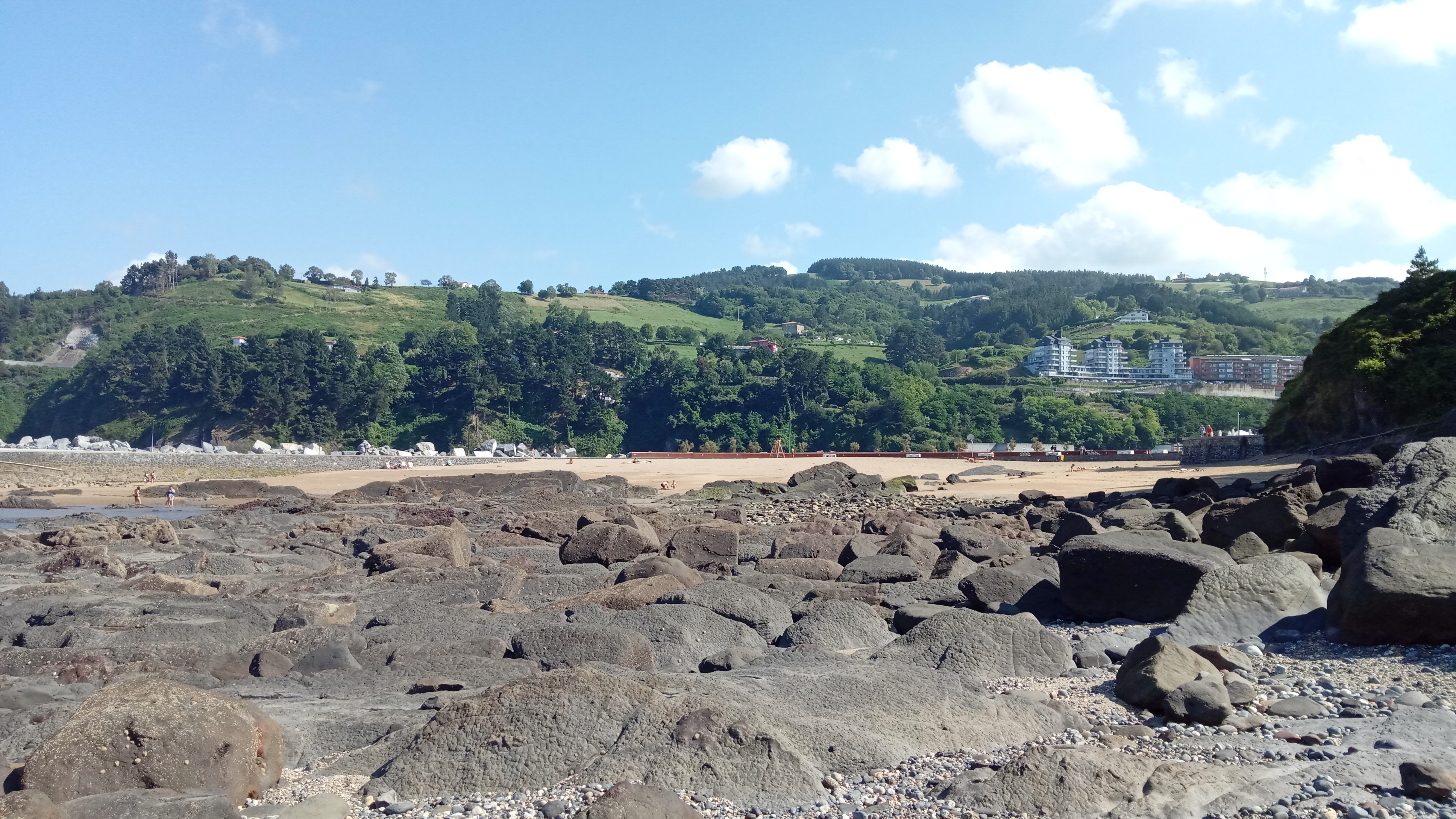 From Pamplona we head towards the seaside. Our destination is a Sidrería which is recommended by España Discovery. Of course I have to buy some cider ;o). After a relaxing night we drive on. Originally we wanted to stop in San Sebastian but the parking for campers was already full… Too bad but that’s how it is. So we drive on to Mutrik. Via a narrow serpentine road through forests and small villages we arrive in Mutrik. Next to a Chiringuito there are 2 parking lots for campers. The drive to there was very special. Beautiful beach with rocks that disappear on high tide. Very pretty and cosy.