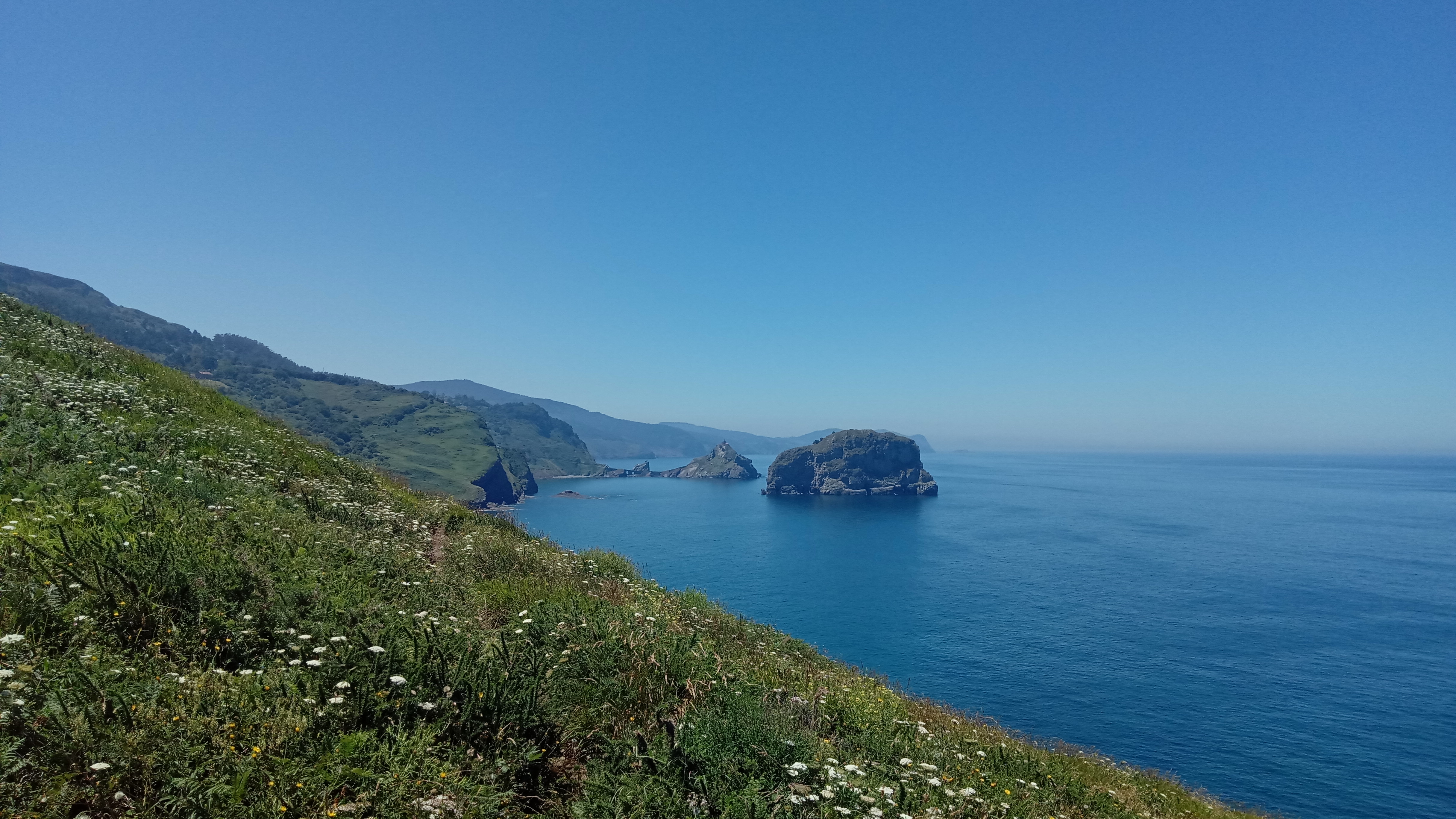 I’m excited to reach the next spot: Off to Lekeitio .The overnight spot is almost full as we arrive. Although it’s hot with 34°C I head out to explore Lekeitio. First to the beach. The path to the Island Sand Nicolas is only walkable on low tide – thank god that this is the case right now :o) The view from the Island is stunning! After visiting the beack I strole to the port to the port wall and then back through the alleys of Lekeitio. The church was also very beautiful but at a little weird at the same time. Back at Baerbel we eat dinner and let the day end smothly.