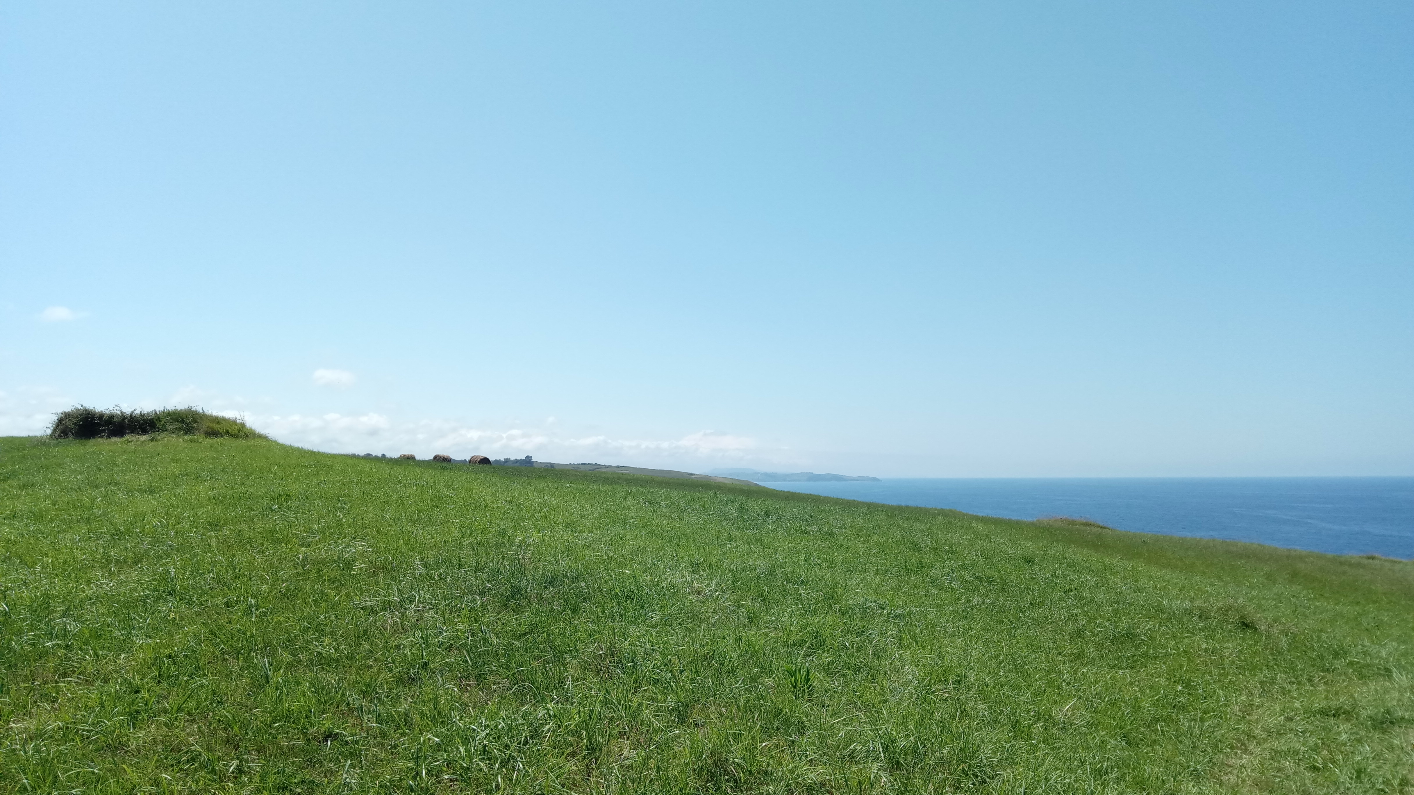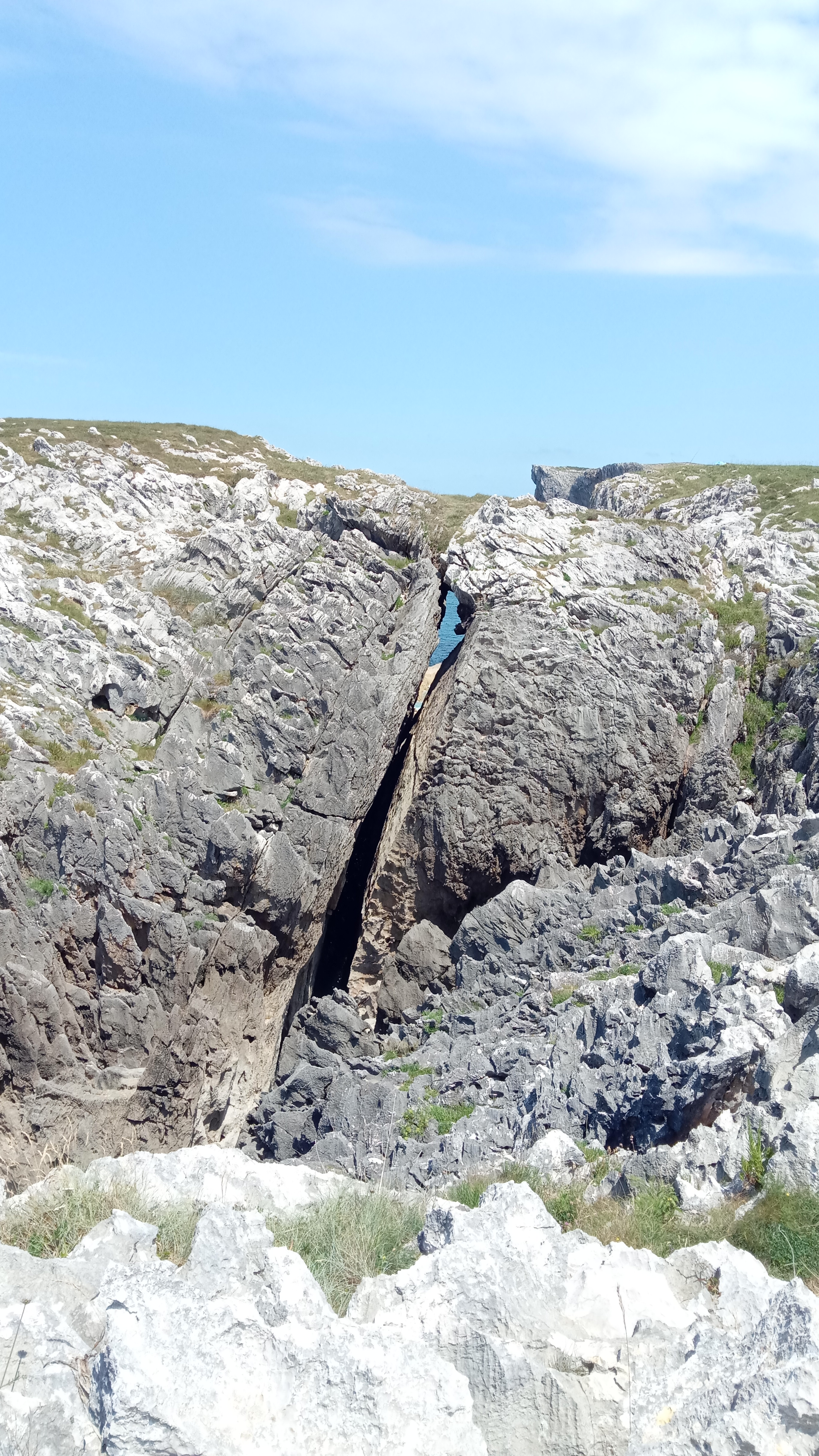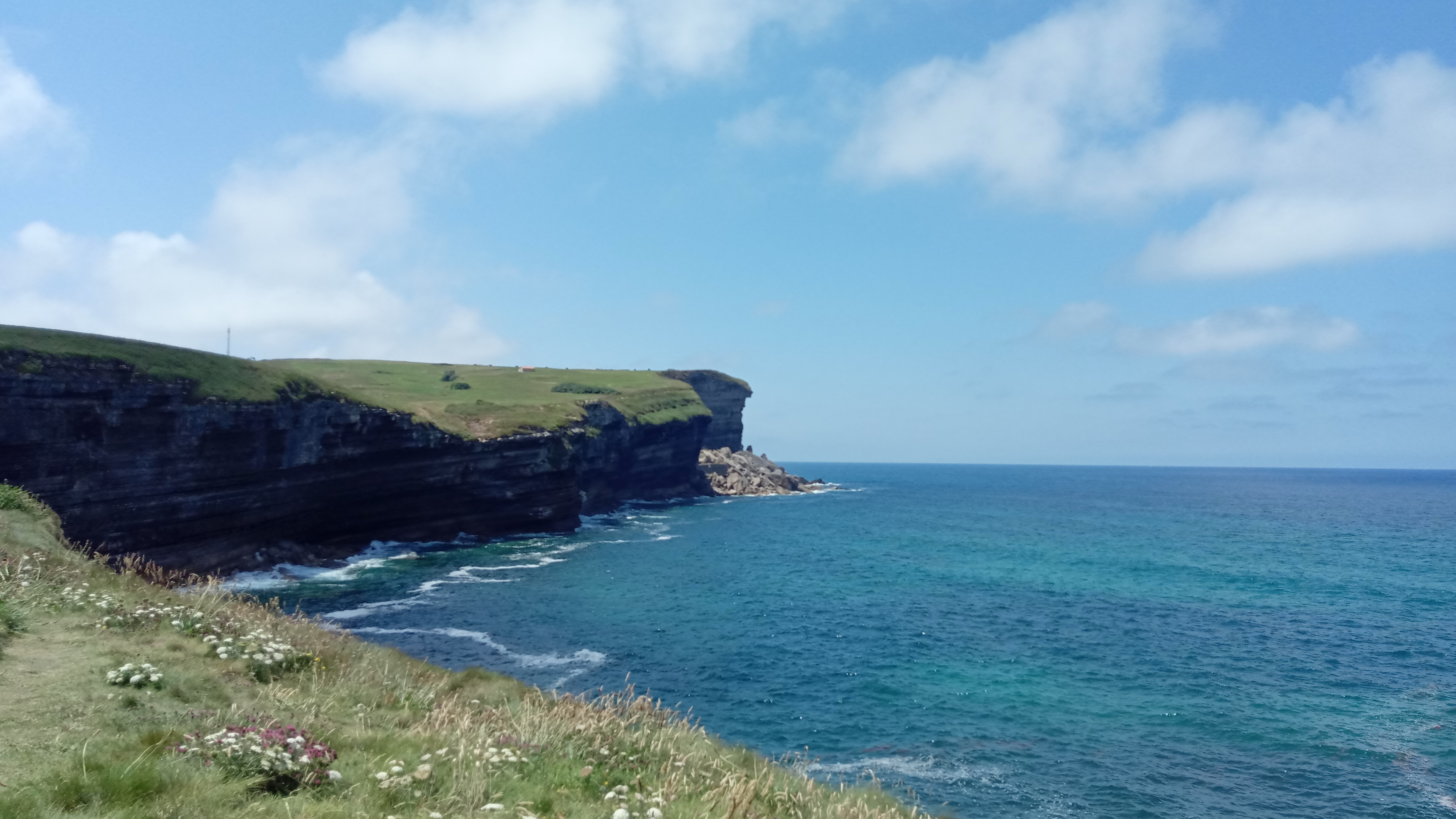 Über Park4night habe ich einen Stellplatz in Cobreces gefunden, der Top bewertet ist. Zudem soll es um die Ecke einen sehr schönen Wasserfall geben – den muss ich sehen. Der Platz ist super, die Betreiberin top und die Lage ein Traum! Auf geht’s zu einer kleinen Wanderung an der Küste Cantabria. Wow – richtig schön! Zum Wasserfall sind es gute 2.5km – leider war der Wasserfall lediglich ein Rinnsal… Naja, die Aussicht ist trotzdem der Hammer. Natürlich lasse ich es mir nicht nehmen, auch den Strand von oben zu sehen. Also entscheide ich spontan, den schmalen Pfad der Klippen entlang zu gehen – und ich bereue es überhaupt nicht!! Einfach nur atemberaubend schön – bis auf die hohen Gräser ;o) Gut habe ich mein Wasser mitgenommen, die Temperaturen haben es nämlich in sich! Tja, dann stehe ich vor einem Elektrozaun – was tun? Unten durchkrabbeln scheint die einzige Lösung. Hätte fast geklappt ohne bzzzz ;o) Tja, weckt Kindheitserinnerungen :O)) Der Ausblick auf den Strand entschädigt die „Strapazen“. Weil ich ja schon unterwegs bin, nehme ich auch gleich die Kirche noch mit bevor ich zurück zu Baerbel marschiere. Absolut sehenswert dieser Küstenabschnitt!