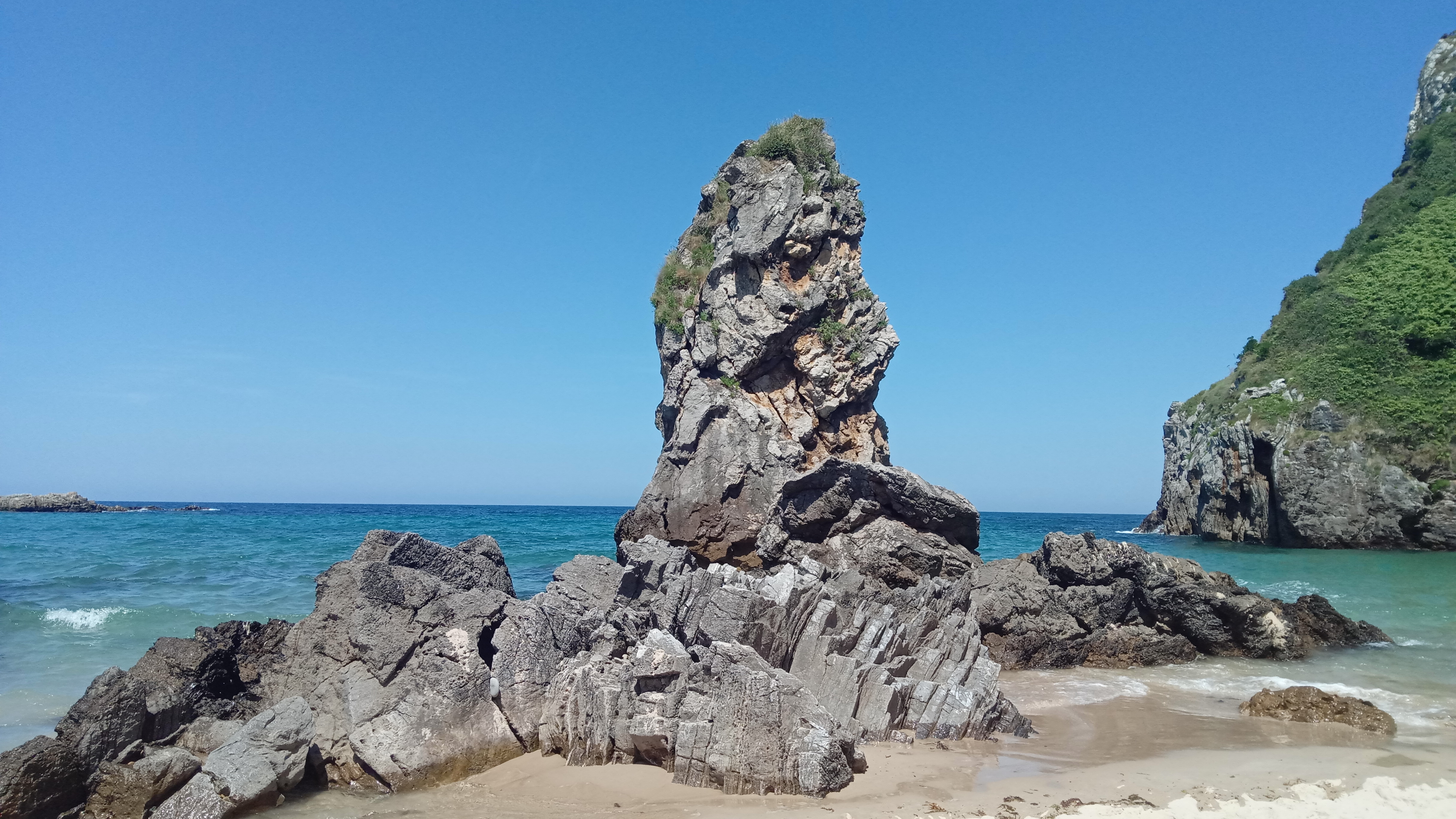 Weiter nach Westen durch die Nebenstrassen Richtung Pechón. Der Parkplatz liegt über einem wunderschönen Strand mit einer kleinen Insel, welche bei Ebbe über den Strand erreicht werden kann. Super schön – bis auf den Weg zurück zum Parkplatz… Ich glaube, ich sollte etwas mehr Sport machen ;o)