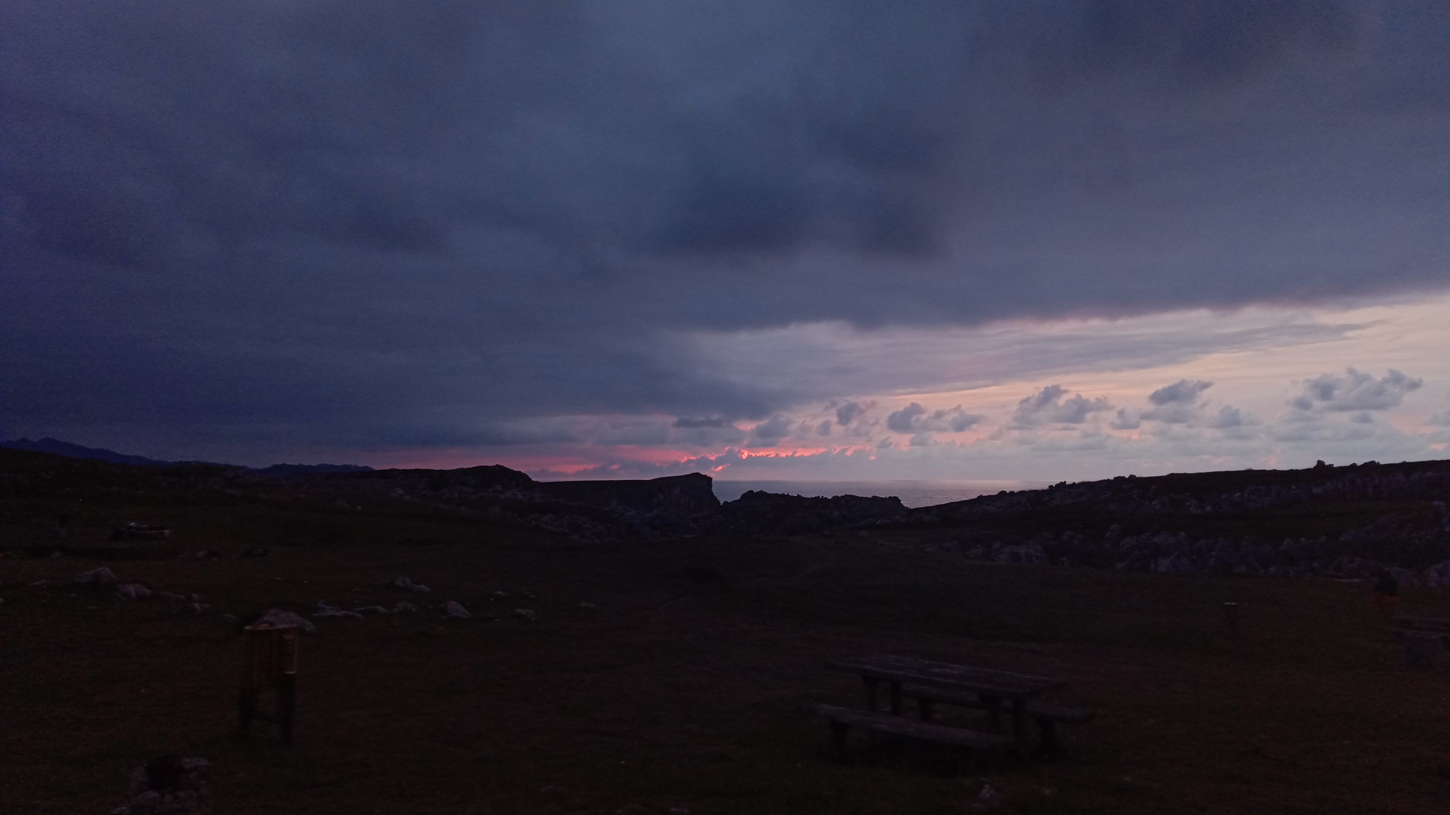 On todays drive we pass the Picos de Europa which we don’t visit – we used to live by the mountains ;o) – We rather head to the sea and end up at a picknick place next to Guadamía with a stunning view to the Bufones de Pria and Acantilados de Guadamía. The playa de Guadamía is almost vanashing completely during high tide. A very impressive spectacle! And the coast is WOW! I have never seen such rock structures before – very fascinating. The sun set is even topping that again – what a life :O)