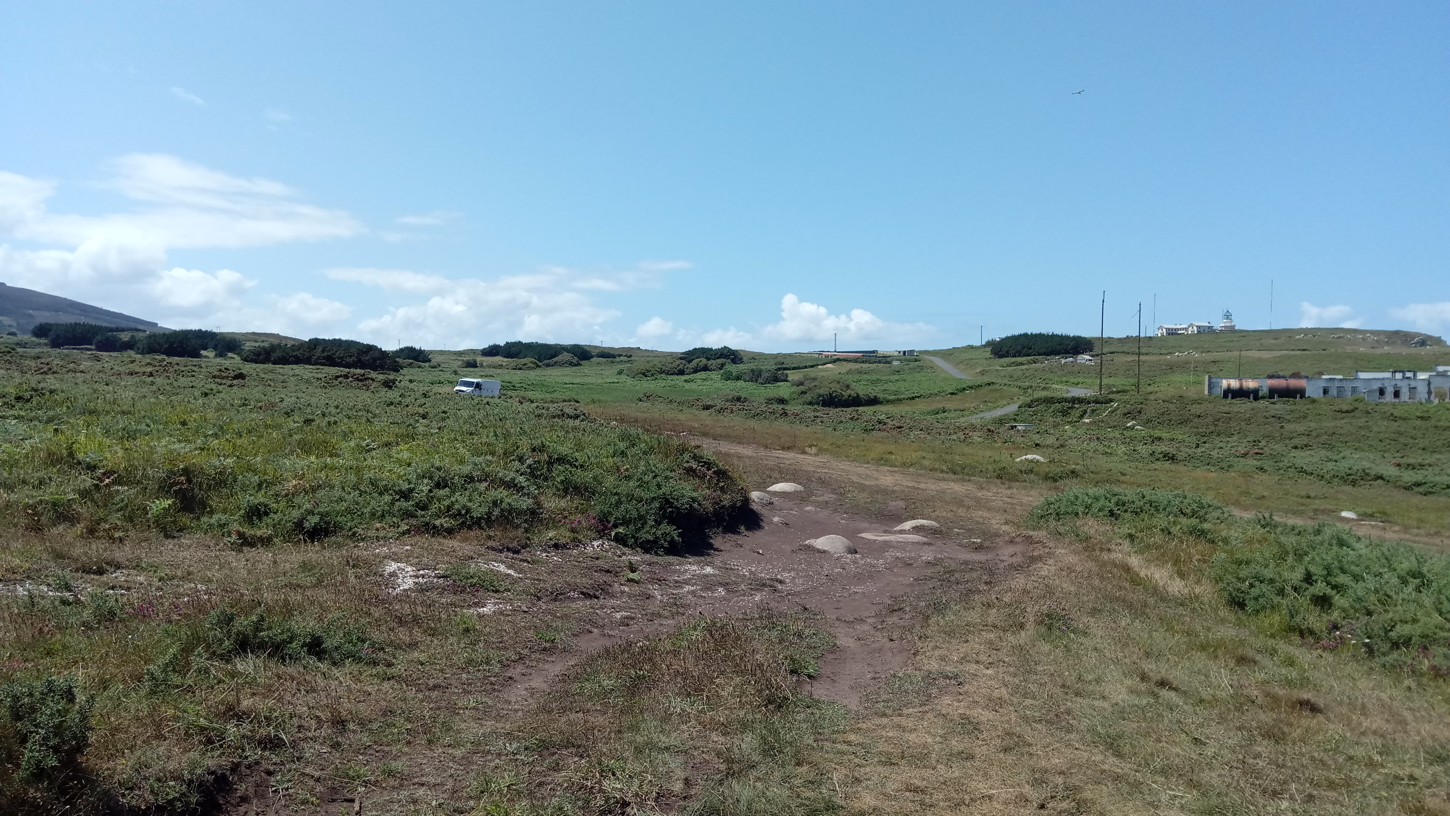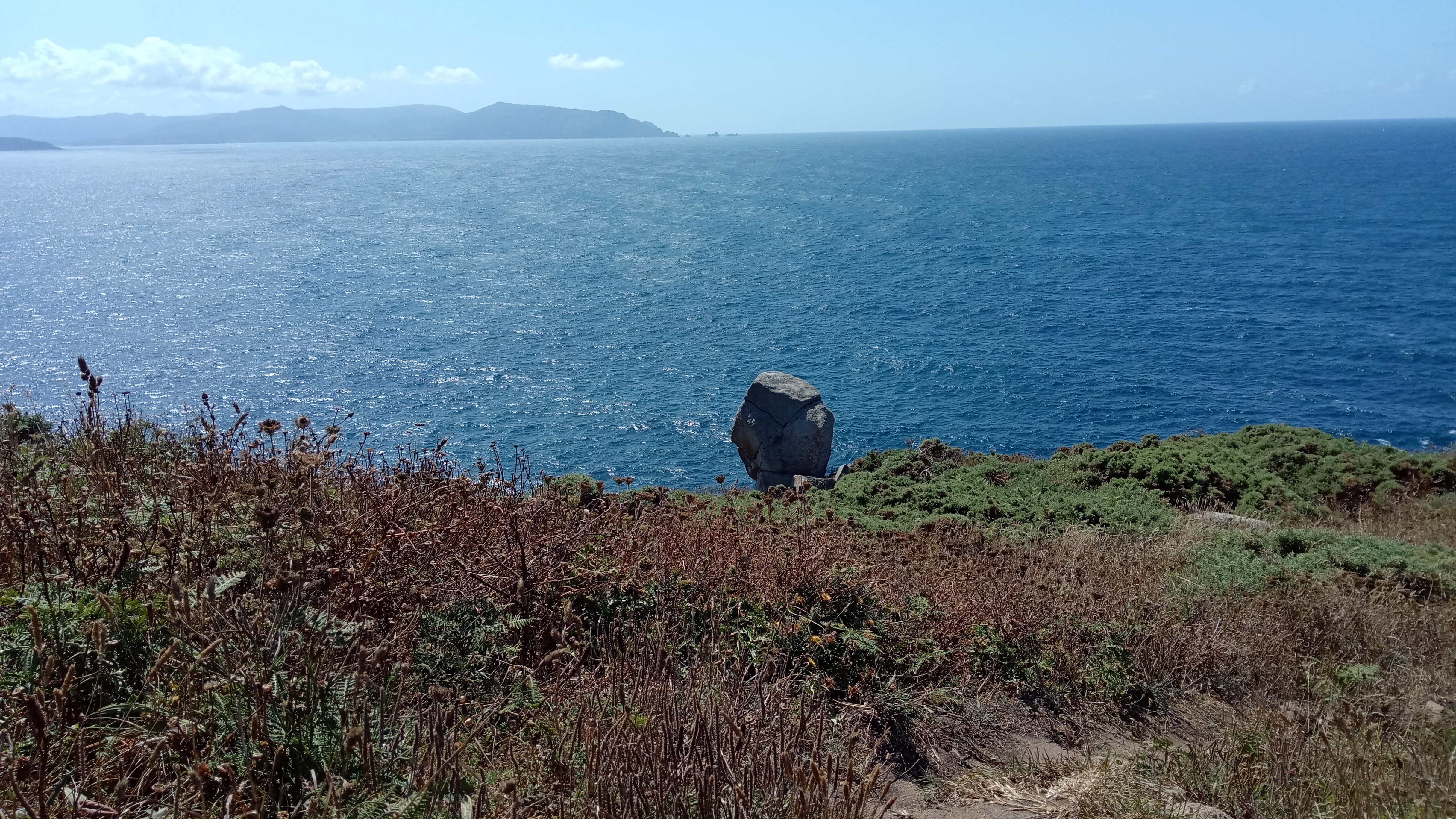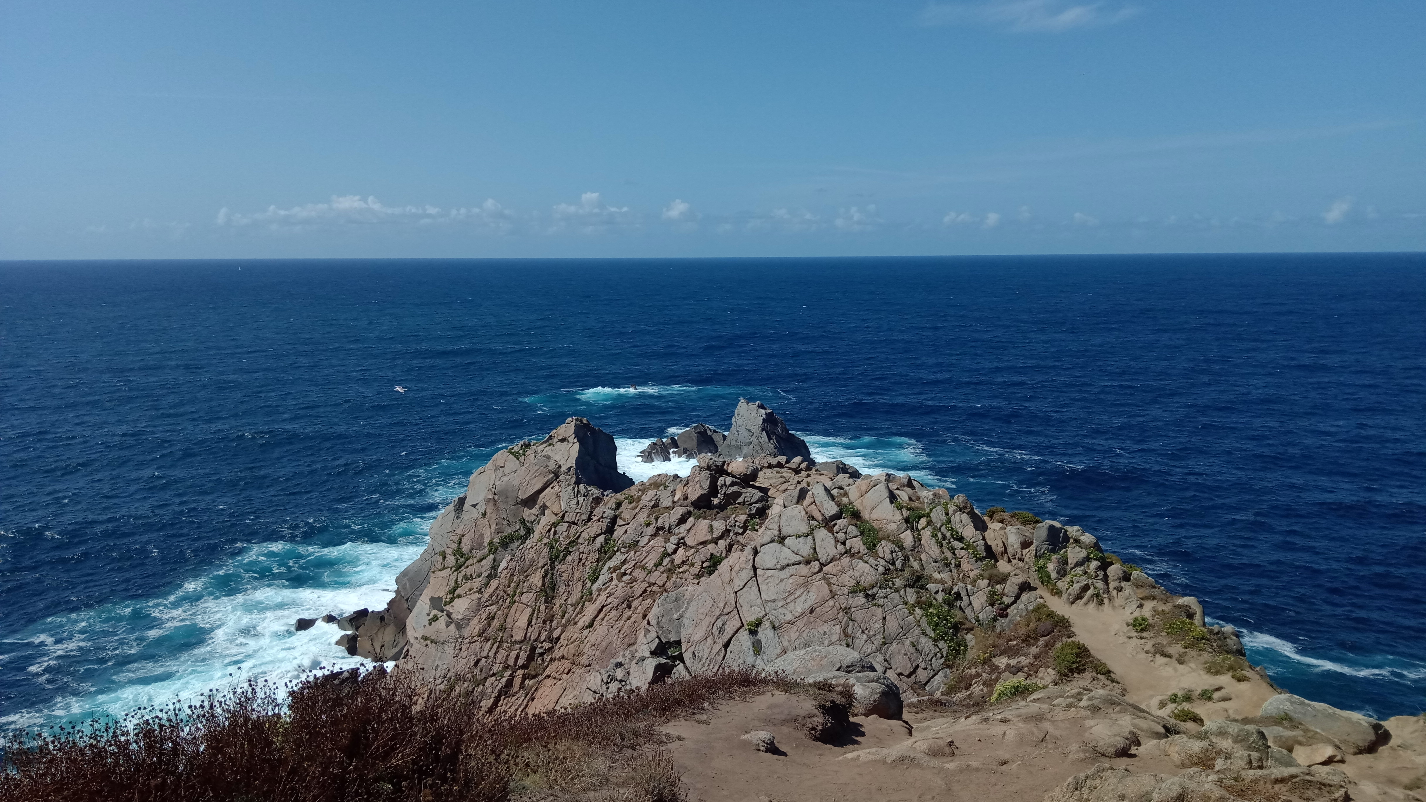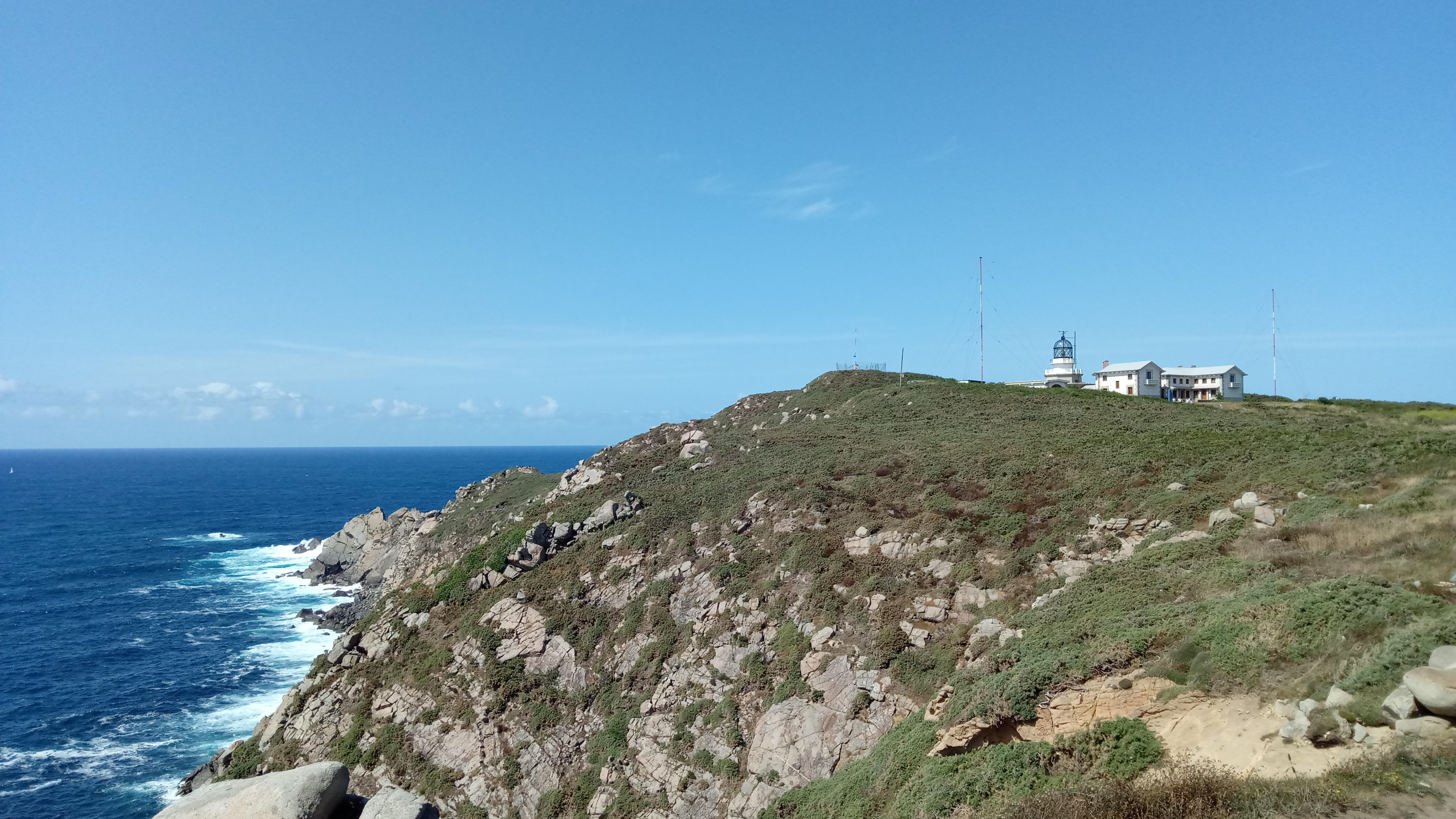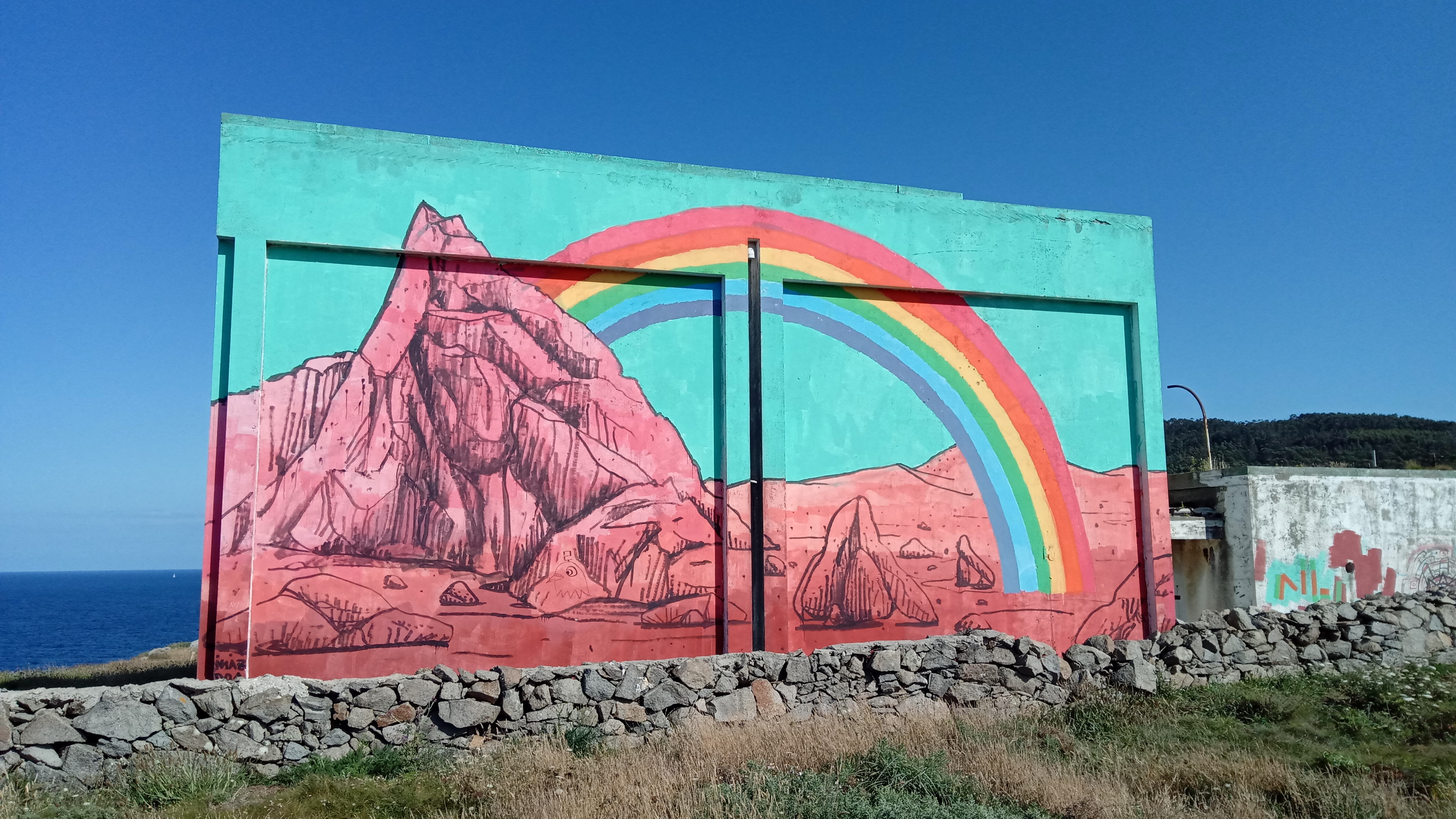 Wie sehr ich doch Leuchttürme liebe – also nichts wie auf dahin. Über Vicedo fahren wir zum Estaca de Bares vorbei an kilometerlangen Sandstränden. Die Strasse zum Leuchtturm schlängelt sich und ist ziemlich schmal. Der Parkplatz beim Leuchtturm ist uns zu stressig also fahren wir weiter nach unten zur Küste. Hinter einem alten amerikanischen Stützpunkt finden wir einen Platz mit super Aussicht auf den Leuchtturm. Zu Fuss mache ich mich auf die Sigüelos zu erkunden. Das sind die Felsen, welche hinter dem Leuchtturm aus dem Meer ragen. Eine traumhafte Aussicht auf die Küste Galiziens. Beim Blick Richtung Baerbel sehe ich ein cooles Graffiti mit einem riesigen Regenbogen auf der Rückseite eines der Gebäude des Stützpunktes. Auch die Gebäude des Stützpunktes sind sehr speziell. Zurück bei Baerbel kommen abends noch 2 Radler an. Wir kommen ins Gespräch und tauschen unsere Lebensgeschichten aus. Einer ist aus Belgien und radelt über Santiago de Compostela Richtung Portugal. Lukas startete in Mainz und fährt nach Santiago de Compostela um für sein Hilfsprojekt in Nicaragua Spenden zu sammeln. Sehr spannende Lebensgeschichten! Da es doch sehr frisch war draussen, haben wir es uns in Baerbel gemütlich gemacht und den beiden einen heissen Tee angeboten. Am nächsten Morgen wurden dann gemeinsam Kaffee getrunken bevor wir uns auf unsere Weiterreise gemacht haben.