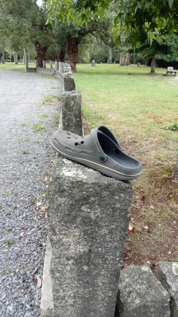 Der Küstenstrasse entlang fahren wir über Cee, O Pindo, Caldebarcos, Carnota und Muros nach Serra de Outes. Wir fahren vorbei an mehreren Plätzen und grossen Menschenmassen… Alles nichts für uns. In Serra de Outes finden wir einen schönen Platz an einem Spielpatz / Picknickplatz – ruhig und doch nicht weit von der Strasse. Nach dem Parken dann die Erkenntnis: Wir haben mal wieder Schuhe auf unserem Tank gelassen ;o))) – diesmal waren es unsere Crocs – naja hab ja meine erst in Spanien gekauft… Einer hat überlebt, da er hinter den Tank gefallen ist – aber einer alleine ist etwas doof. Tja, da müssen wir uns wohl im nächsten Chinaladen, welche es hier an jeder Strassenecke gibt, neue kaufen.
