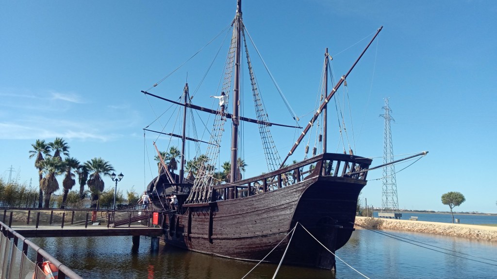 Die Kanaren mit dem Wohnmobil zu befahren ist für viele eine tolle Sache. Auch für mich war das etwas spezielles. Unsere Reise beginnt in Huelva, Spanien wo wir mit der Fähre von FRS in 38 Stunden nach Las Palmas Gran Canaria übersetzen. Da ich bei solchen Reisen stets zeitig am Hafen sein will, verbringen wir die Nacht vor der Überfahrt neben dem Columbus Museum in Huelva an der Muelle dellas Carabelas. Sehr interessantes Museum, richtig schön gemacht.