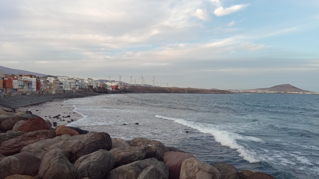An ideal overnight stop can be found at the Playa de Burrero. A small town with a very nice stone beach. ONly a few peole and perfect for polane spotting ;o).