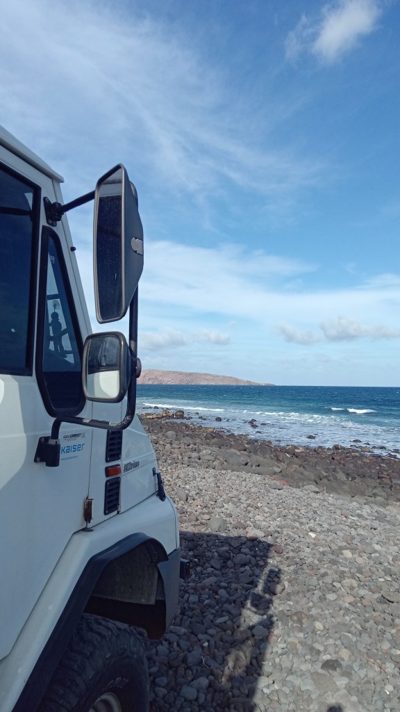 Eine ideale Übernachtungsmöglichkeit finden wir am Playa de Burrero. Ein kleines Dorf mit einem schönen Steinstrand. Wenig Leute und zum Beaobachten von Flugzeugen perfekt ;o).