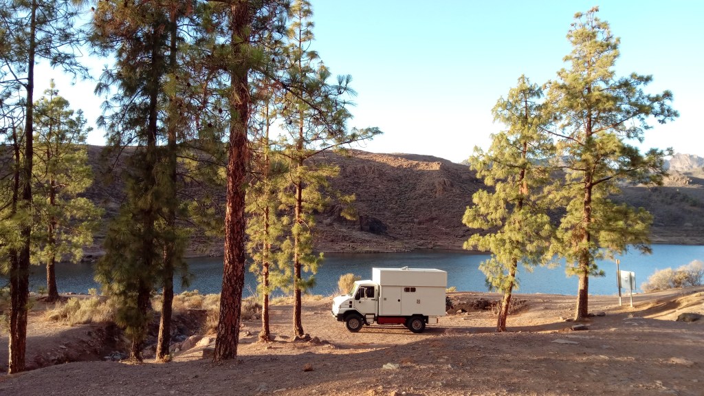 Um den vielen Touristen etwas zu entfliehen fahren wir in die Berge. Leider war es auf den Picos de las Nieves etwas zu kalt. Daher fuhren wir wieder hinunter bis zum Presa de Chira. Was für ein traumhafter Ort! Die Ruhe und die Natur sind der Hammer. Absolut empfehlenswert. Im Ort gibt es eine kleine Bäckerei, aber ansonsten gibt es hier keine Versorgungsmöglichkeiten.