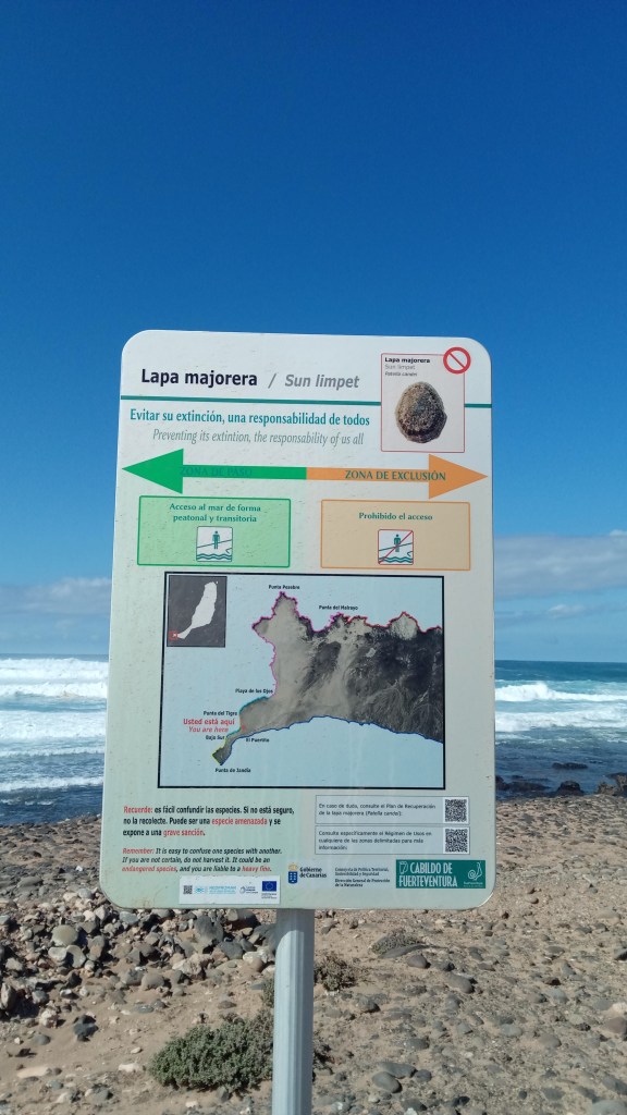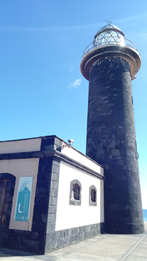 Playa de Cotillo wurde uns von alles als Traumziel gennant. Also machen wir uns auf den Weg dahin. Es sei das Surfermekka von Fuerteventura – und ja, es gibt hier viele Surfshop s und Schulen. Allerdings scheint hier im Winter nicht sehr viel los zu sein. Wir suchen uns ein Plätzchen in der Nähe des Faro del Tostón. Einige andere Camper sind auch noch hier. Das Gebiet ist sehr zu empfehlen für einen Spaziergang an der Küste. Der Leuchtturm ist sehr schön und die Küstenlinie auch sehr einladend. Allerdings ist auch hier klar zu sehen, dass diverse Parkverbotsschilder der Küste entlang . Naja, hier wo wir stehen, trifft dies nicht zu.