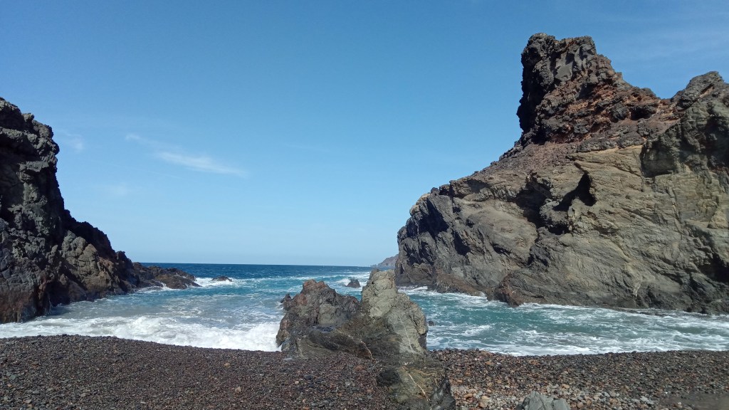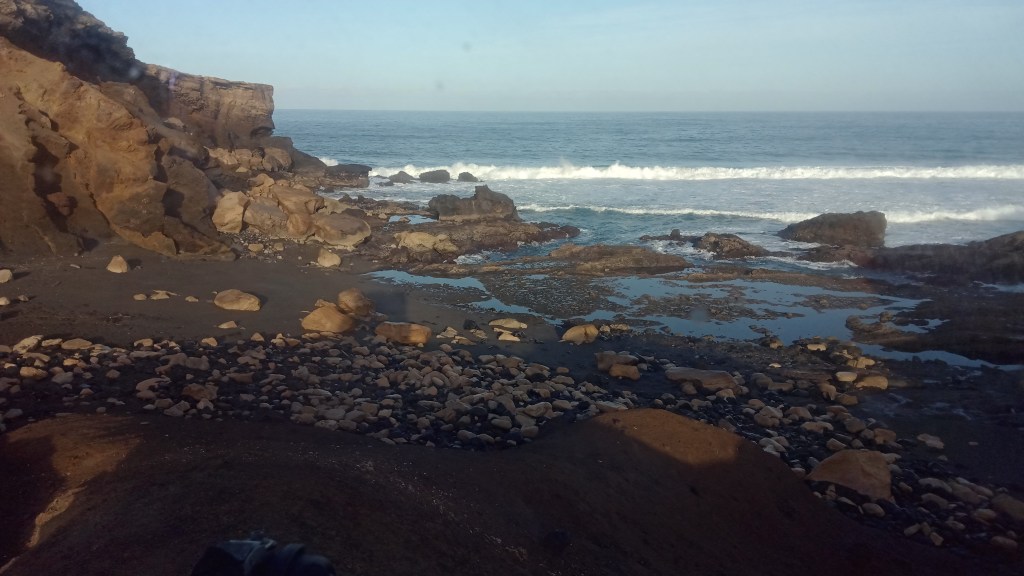 Next stop Baja de Junquillo. The road to get there is long and leads over a gravel road of 10km with speed of 20 km/H 😉 The beach is not very nice but it has it’s own water well!! Perfect for an outdoor shower :o) and the quiet – we haven’t seen anybody for the last 3 days. Relaxing at its fullest. A lot of reading and watching the waves. And of course staring at goats :o)