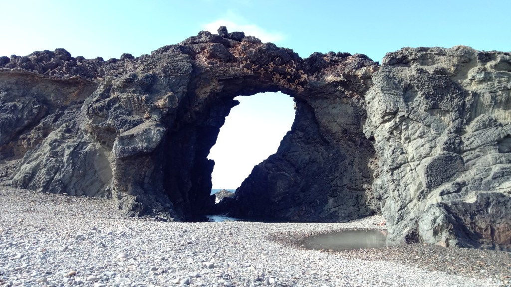 Next stop Ajuy. Via the FV605 we head to Antigua where we stop at Hiperdino to shop again. Via the FV621 towards Ajuy – In Ajuy there are also the Cuevas de Ajuy, a very well visited tourist hotspot. We head to the right before the Cuevas on a gravel road. We thought we were going to be the only ones there as the road was in rather bad condition. But we were wrong, the beach next to Pena Horada is very well visited. But in the evening we are alone. A dream – also to watch the stars, as there is next to no light waste to ruin the view to the stars. The rock of Pena Horada is really worth a visit! What nature can do always amazes me!