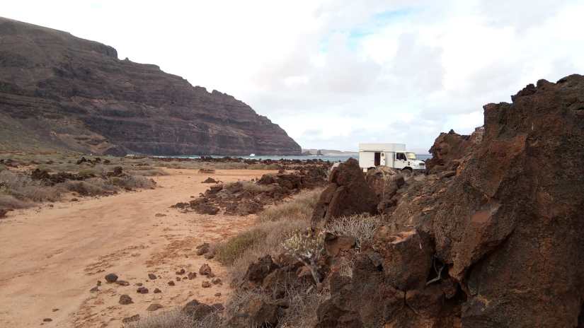 Heute fahren wir zum nördlichste Punkt der Insel in Órzola. Das Wetter schlägt um und es beginnt zu regnen. Gegen 23 Uhr entscheiden wir uns, umzuparken, da wir hier auf Sand stehen und bei dem Starkregen ein Wegkommen eventuell schwierig sein könnte. Ja das gehört auch zum Campen – spontane Planänderungen 😉 Neben einem Aloe Museum an der Hauptstrasse bleiben wir für die Nacht stehen.