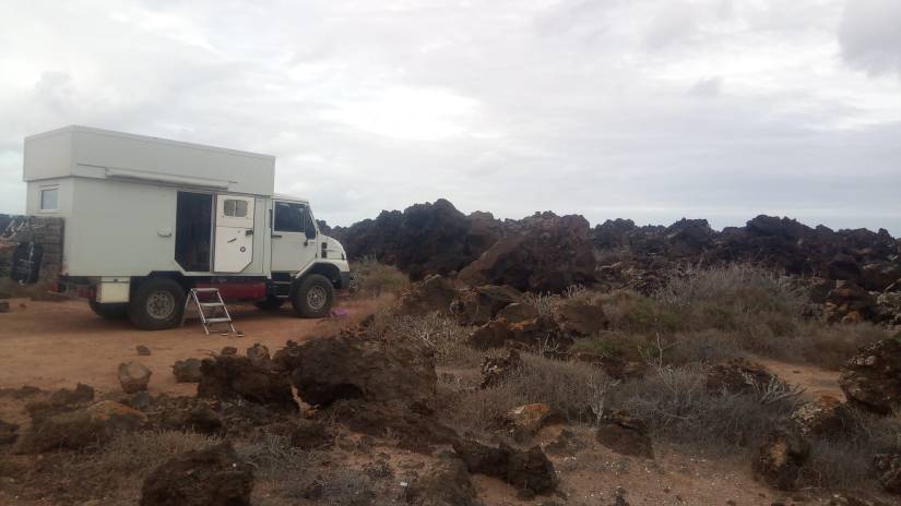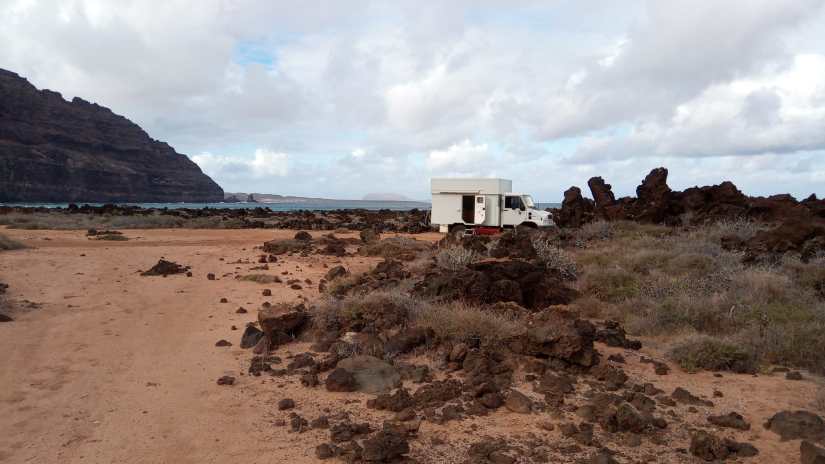 Today we drive to Órzola the most north point of the island. The weather changes and it starts to rain. Around 11 pm we decide to move as we are standing on sand and with the heavy rain it might be difficult to get out. Well yes, this is also part of Camping – spontaneuos plan changing 😉 On a parking lot of an Aloe museum next to thte main road we find a safe place for the night.