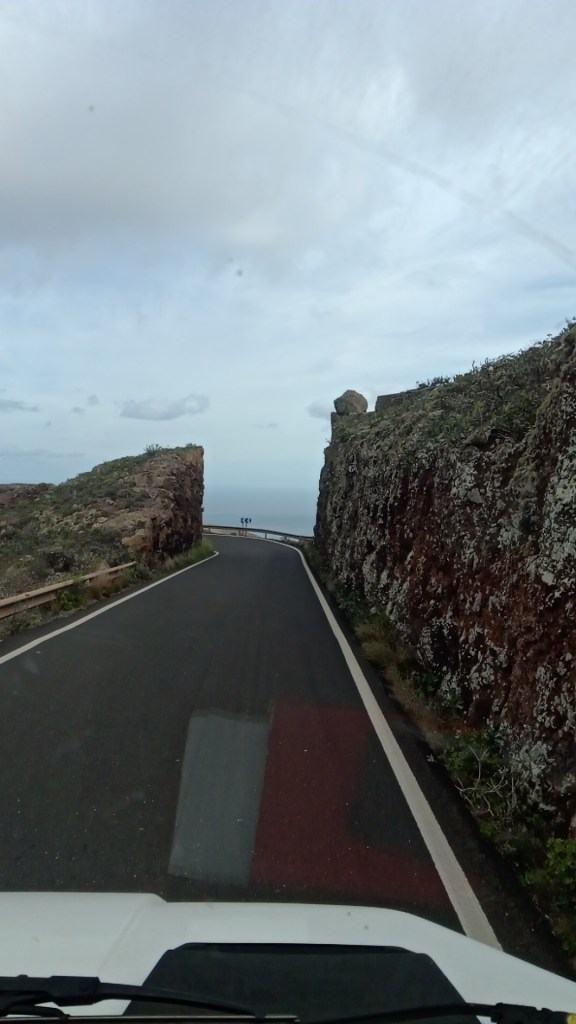 We head on via Mancha Blanca towards La Santa. There is a place for surfers. It is nice but we are looking for a bit more quiet. So we head back a bit to get to the Barranco de Burro. The road to get there is perfect for an offroad vehicle. And the scenery is spectacular.