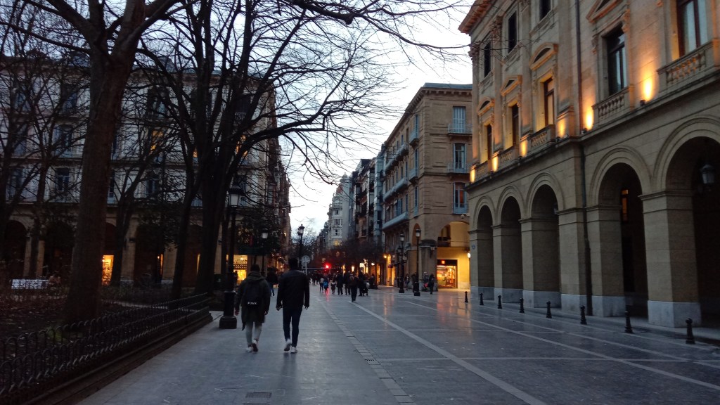 Ich passiere das Denkmal zu den Unruhen unter Franco und gehe weiter Richtung Tourismusbüro. Dort decke ich mich mit einigen Informationen ein bevor ich die Fussgängerzone mit vielen Bars und Geschäften hinabschlendere. Dort liegt auch der wunderschön angelegte Gipuzkoa Plaza. Langsam wird es dunkel und ich mache mich wieder auf den Rückweg. San Sebastian ist definitv ein Besuch wert. Die Architektur ist der Hammer und die Strassen laden zum Flanieren und Einkaufen sowie Essen und Trinken ein.