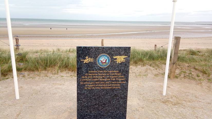 Danach fuhren wir weiter Richtung Utah Beach auf der D421. Am ganzen Strand gibt es diverse Bunker – kaum vorstellbar, dass an diesem friedlichen Strand mal so eine Grausamkeit stattgefunden hat. Am Strand befindet sich auch das Denkmal der Landung der 2. Division der USA.