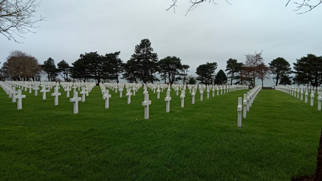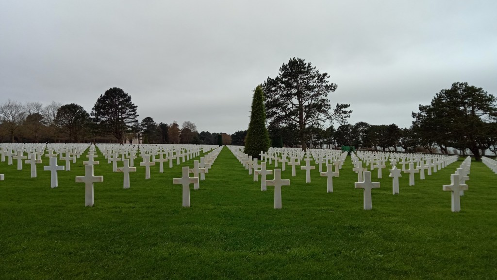 Mit Aussicht auf den Omaha Beach wurde der US Gedenkfriedhof angelegt. Da es sich auf amerikanischem Boden befindet, gibt es hier für den Besuch des kostenlosen Museums Sicherheitskontrollen. Aber gemacht ist es sehr eindrücklich. Auch die Gedenkkreuze sind beeindruckend.