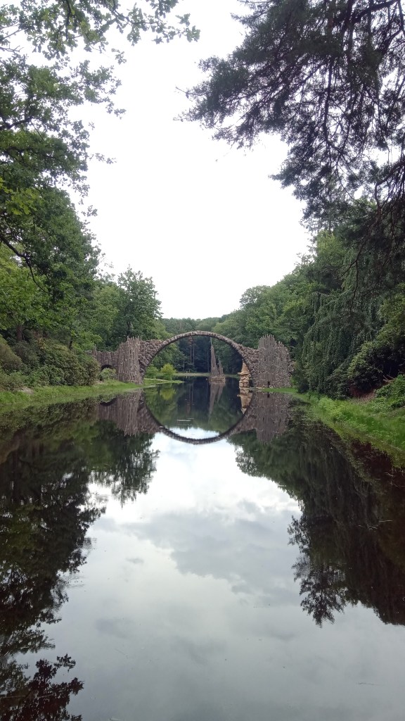 Von der Lausitz ins Hochmoor an der holländischen Grenze. Unser erster Stopp führt uns, wie wir im Nachhinein feststellen mussten, zu einem Instagram Hotspot – der Rakotzbrücke. In einem schön angelegten Park steht diese künstliche, nicht begehbare Brücke. Ein schönes Fotomotiv aber das wars dann auch. Auch der Parkplatz, der gleichzeitig als Stellplatz kostenpflichtig benutzt werden kann, war für uns jetzt nicht so ganz das richtige. Wir machen also das obligatorische Foto und fahren dann weiter Richtung Ludwigsfelde. Unterwegs kommen wir noch an einem Gedenkfriedhof des 2. Weltkriegs vorbei. Bei einem kleinen Fluss neben Ackerland finden wir einen schönen Platz für die Nacht.