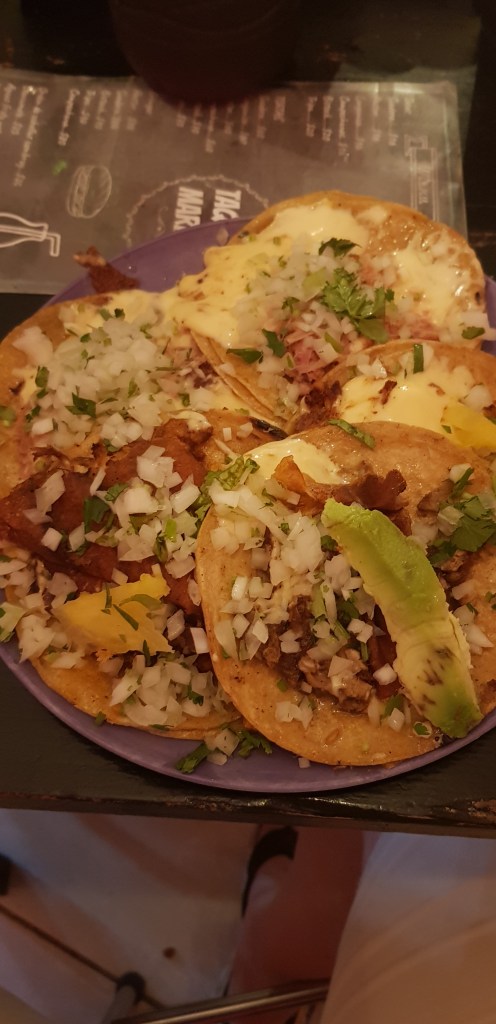 Soo wir checken dann mal in unserem Airbnb ein – Das liegt bei Puerto Morelos in einer gated Community. Mit dem Taxi fahren wir zum Flughafen um unseren Besuch abzuholen. Und dann rasch zurück in die Unterkunft – falls ihr mit dem Taxi aus dem Flughafen müsst, dass ist sehr teuer 🙄. Aber wir haben kein Mietauto für die Tage, das das nochmals teurer wäre. Zurück im Airbnb gleich mal ein Bierchen. Dann kommt der Hunger – also nichts wie los zum Taco Stand um die Ecke 😎
