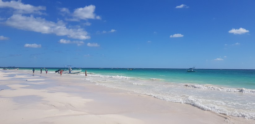 Heute machen wir einen Abstecher nach Puerto Morelos – ein hübsches Fischerdorf zwischen Cancún und Playa del Carmen direkt am karibischen Meer. Es gibt diverse Angebote für Schnorchel und Tauchausflüge. Wir geniessen die Atmosphäre, kaufen uns ein paar Bierchen und setzen uns an den Strand zum Entspannen. Bei 28° Ende Dezember muss man doch die Umgebung etwas auf sich wirken lassen 😉