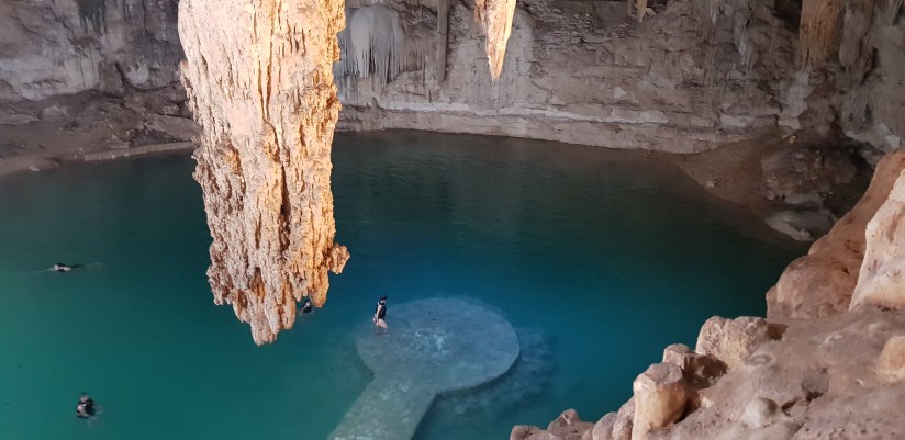 Cenoten sind sogenannte Karsthöhlen mit Grundwasserzugang, die oft durch Einsturz der Höhlendecke dolinenartig als grosses Kalksteinloch vorliegt, das mit Süsswasser gefüllt ist.
