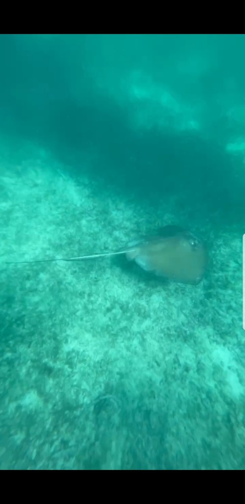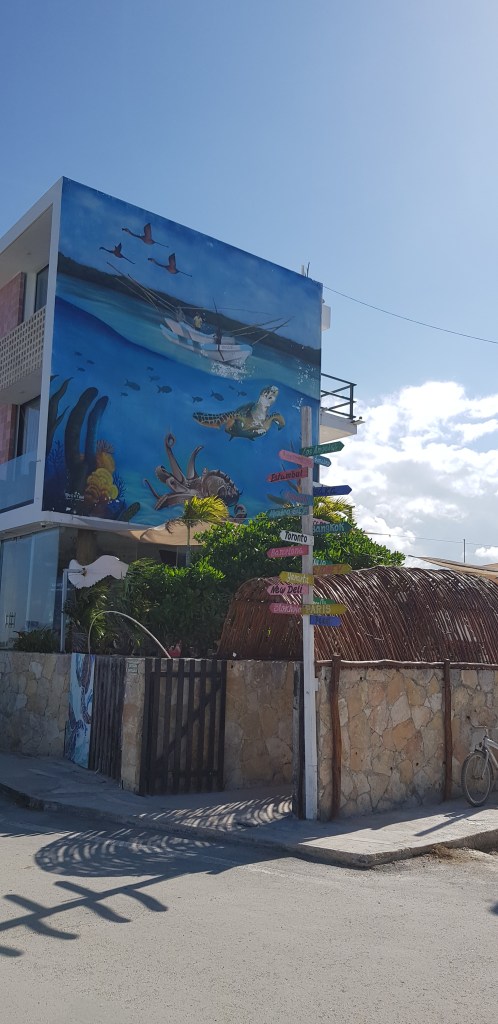 Nächster Halt – Tulum. Wir haben uns ein sehr schönes Airbnb in einer gated Community – also einer bewachten Wohnanlage gebucht. Sogar mit eigenem Pool 😍 Allerdings haben wir alle leichte Probleme mit unserem Magen – vermutlich die Eiswürfel, welche wir leider nicht abbestellt hatten bei den Micheladas und der Margarita… Mit dem Taxi geht es dann 1x zum einkaufen. Unser Besuch mietet sich einen Roller und erkundet die Gegend. Wir hatten ja die Ruinen bereits gesehen und geniessen das wunderschöne Airbnb. Natürlich muss man doch nochmals zum Strand. 1x Schnorcheln für gute 2 Stunden für 250 MXN – kann man machen. Wir sehen Schildkröten, Rochen und ganz viele bunte Fische. Leider gleicht es hier eher einer Meeressuppe aus Touristen – voll die Abfertigung. Aber es war dennoch ein Erlebnis. Beim Einstieg ins Boot habe ich mir richtig doll den grossen Zeh gestossen 😱gehen war sehr schmerzhaft. Also erst mal am Strand ne Kleinigkeit essen bevor es auf dem Roller nochmals ein Bisschen durch Tulum geht. Eigentlich wollten wir zu diesem Skulpturen Park doch wie sich herausstellte, ist das nur eine einzelne Skulptur, für welche Eintritt bezahlt werden muss – nein danke. Naja, zurück in die Unterkunft.