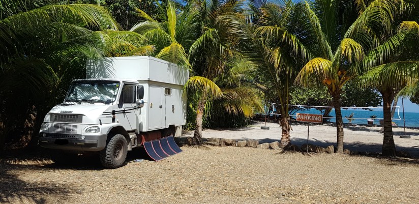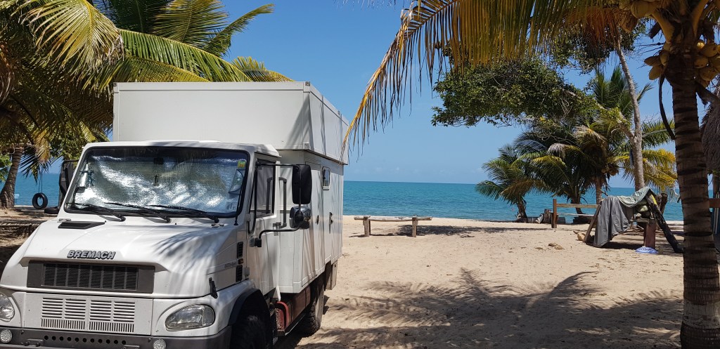 Auf dem Rückweg wollten wir eigentlich zum Sittee River entscheiden uns dann aber den Castillo Camping in Hopkins anzuschauen. Und das war dann auch wirklich ein Traumplatz. Wir können direkt auf dem weissen Sandstrand parken, die Karibik zu Füssen. Kurz nach unserer Ankunft kommen 2 Motorradfahrer mit ihren BMWs angerauscht – Barbara und Robert von ride2seetheworld. Wir vebringen einen gemütlichen Abend mit Bierchen, leckeren Hotdogs und tauschen Geschichten und Erfahrungen aus. Die beiden verabschieden sich am nächsten Tag – wir bleiben noch und geniessen das Paradies.