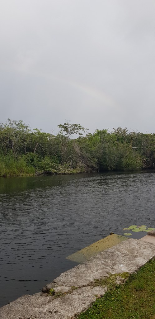 Unser nächstes Ziel liegt in Spanish Lookout – eine der vielen Mennoniten Siedlungen hier in Belize. Wir gönnen uns leckere Burger bei Sisters Diners und kaufen beim Farmers Trading Center ein – ein relativ grosser Supermarkt, der neben Lebensmittel auch einen Baumarkt untergebracht hat. Ach, es war so schön, mal wieder ohne Maske einkaufen zu gehen 🤩 Unser Übernachtungsplatz liegt im Community Park, einem wunderschön angelegten Park mit künstlichem See, diversen Grillstationen mit hübschen Sitzmöglichkeiten sowie grossen Versammlungsplätzen für die Community. Aber am meisten beeindruckt hat mich die Gedänkstätte der Gemeinde, welche zum 50 jährigen Jubiläum erstellt wurde. Eine Art Schneckenweg mit einem Baum im Zentrum, welcher den Zeitpunkt der ersten Siedler symbolisiert und diese auch namentlich auf handbeschriebenen Holztafeln nennt, führt dann durch die letzten 50 Jahre. Auf weiteren Holztafeln werden dann Ereignisse festgehalten, die im jeweiligen Jahr in der Gemeinde passiert sind. Beeindruckend! Während der Woche ist der Zutritt zum Park kostenlos. Die Nächte sind ruhig und entspannt.