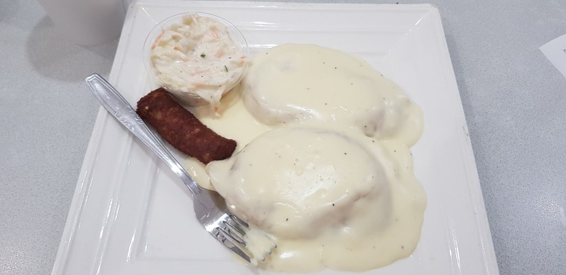 Auf unserer Fahrt nach San Ignacio halten wir nochmals bei Rheinland – dem Fleischproduzenten in Spanish Lookout, der echt sehr leckere Würste produziert. Allerdings musste ich auch hier feststellen, dass sämtliche Erzeugnisse in Tiefkühltruhen aufbewahrt werden – leider nix mit frischem Brot und frischem Fleisch 😕. Als Trost machen wir noch einen Stopp bei Western Dairies, dem Milchprodukte Fabrikant in Belize. Wir gönnen uns Stuffed Jack, eine gefüllte Teigtasche mit, so scheint es zumindest, allem drin, was vom Vortag übrig geblieben ist 🙈 plus Ei – aber sehr lecker. Ich probiere die Perogies, ebenfalls Teigtaschen gefüllt mit einer Art Ricotta Käse ertränkt in einer Mehlsauce. Kaffee ist kostenlos für alle Gäste. Man kann hier auch Käse, Milch und Joghurt kaufen.
